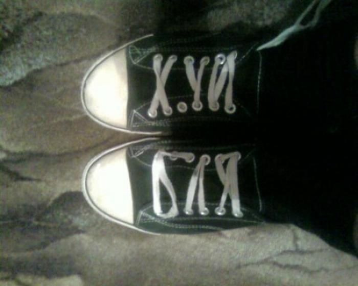 НянпасуНадеюсь шнурки были как то интересно перевязаны, а не дефолтно.