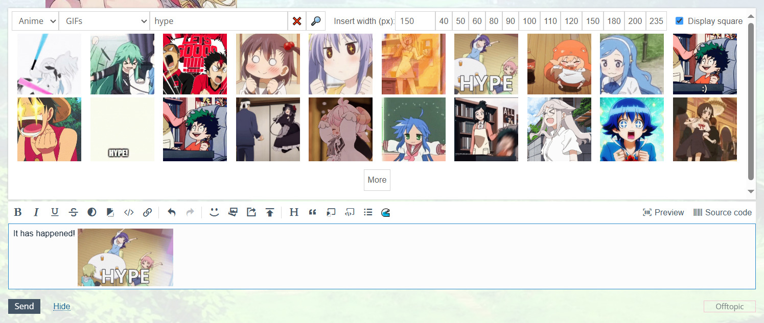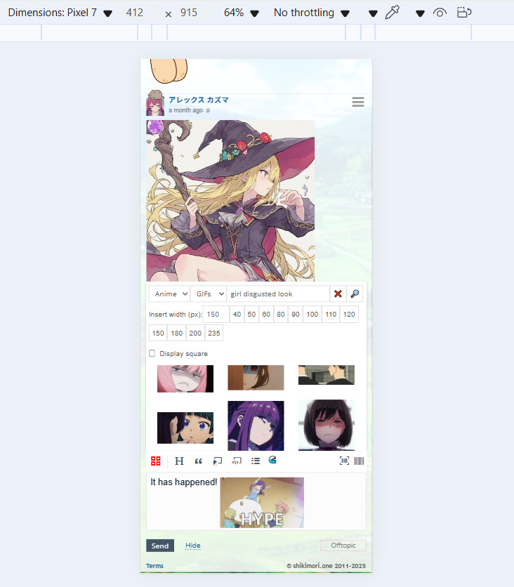 Будем надеяться, когда-нибудь подобный инструмент будет встроен в сам Шикимори, чтобы каждый пользователь мог щитпостить и спамить гифки внести свой вклад в бравое дело распространения аниме-моментов.