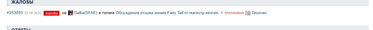 , На то, что ты ответил - офф-топ, базару ноль. Но я упоминал сходки и посиделки гильдии из аниме. Так что я считай по делу всё говорил. Спецом тебе вот плашку ставлю офф-топа, чтобы третий репорт от тебя не ловить. Кстати:
