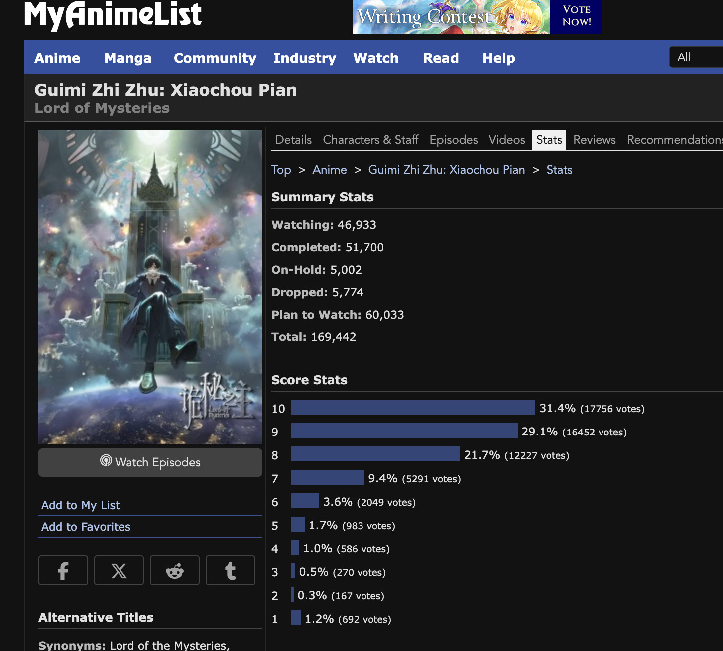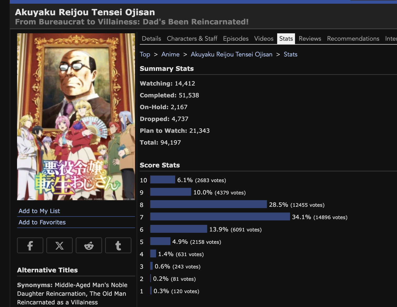 При этом у "Перерождении мужчины мужчины средних лет в дочь дворянина" практически такое же количество просмотревших.А там явно нет такой мировой "популярности" как у ПТ