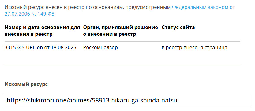 Но Роскомнадзор возбудился и теперь станичку тайтла открыть не так просто…
