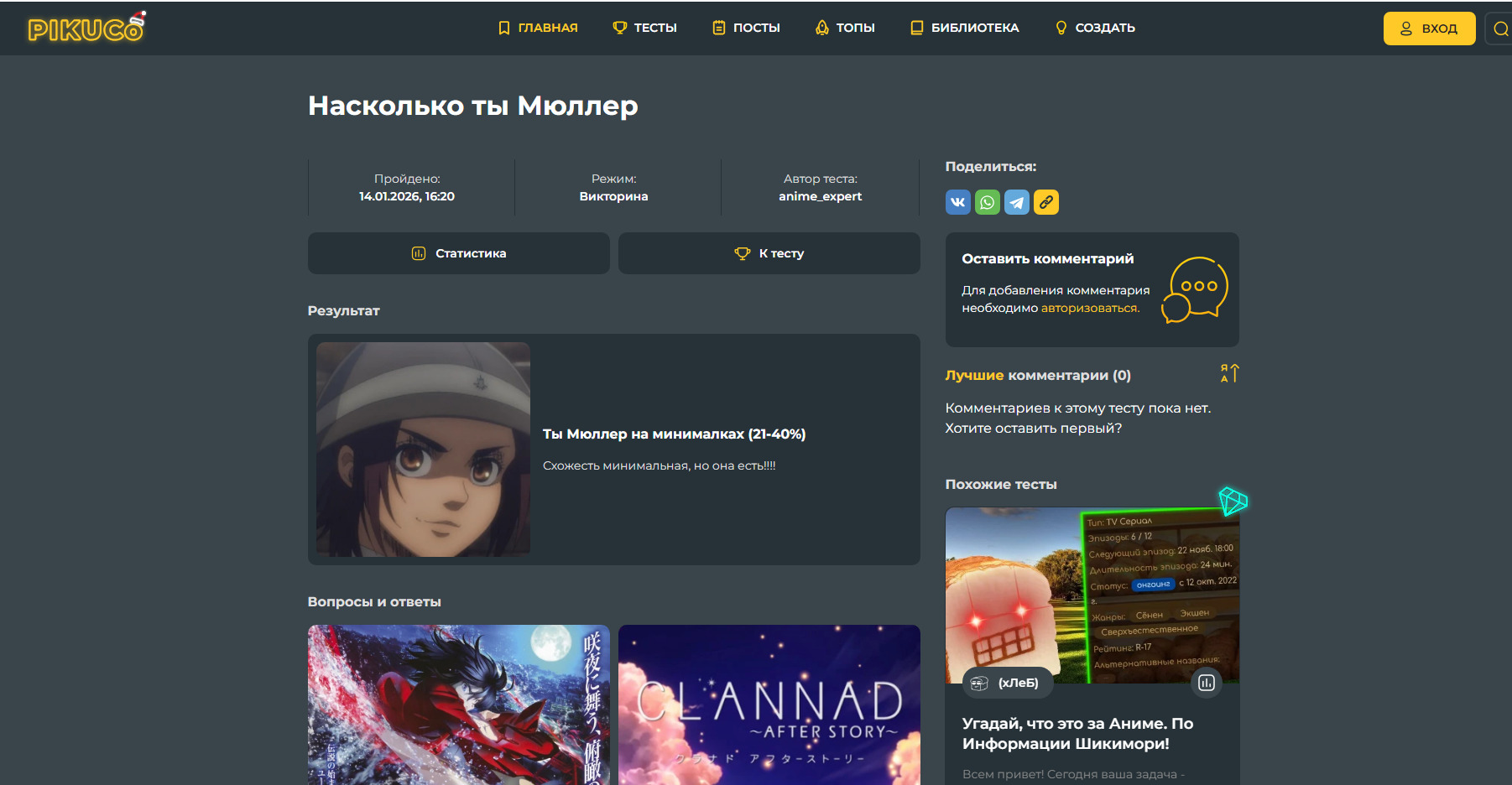 Обсуждение коллекции [ ИНТЕРАКТИВ ] Насколько ты Мюллер