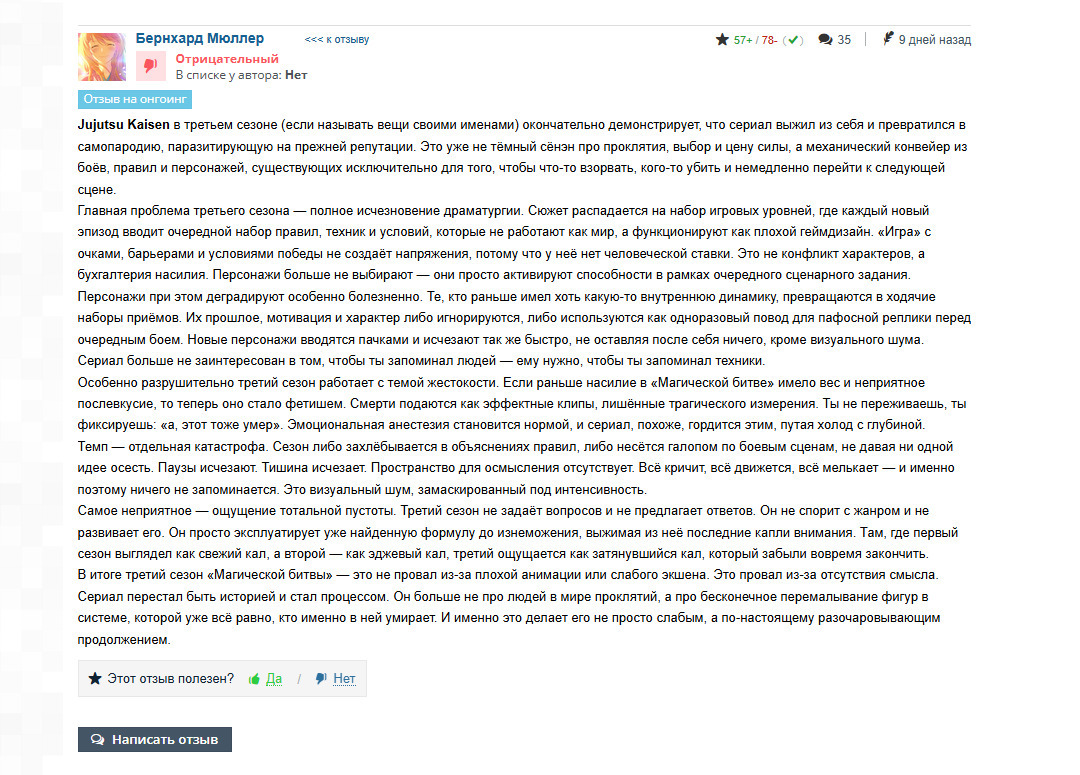 Тут твой отзыв скинули