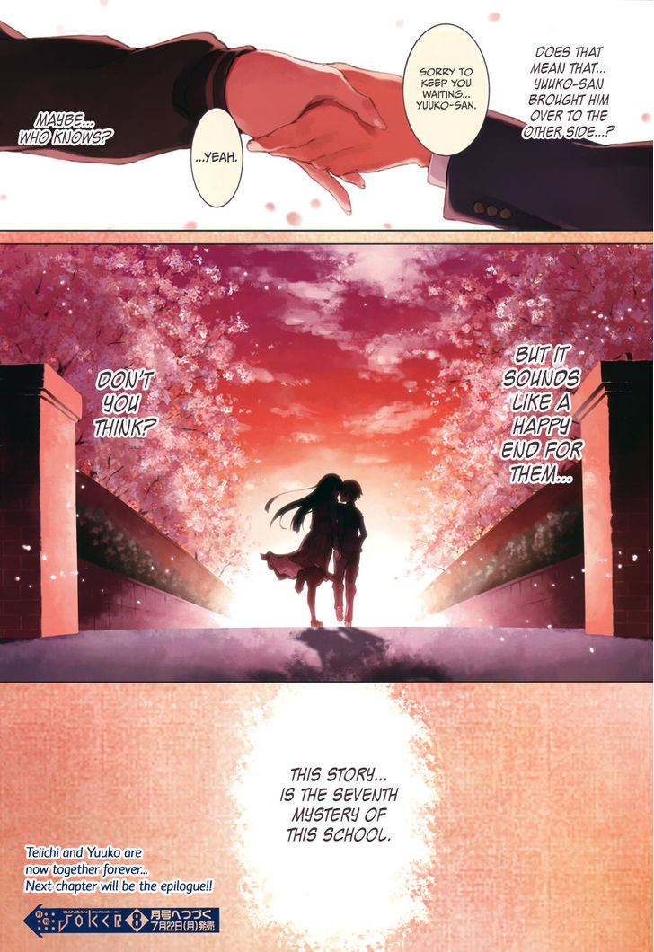 не читал мангу до конца, поэтому мне наперебой тут в чате когда то слегка проспойлерили, отсюда я и вынес вердикт. Мне сказали, что в манге гг-тня просто смогла покидать пределы школы и поселилась в квартире героя. То, что она стала высшим духом я не знал. Та и все равно это хоть и меняет мое отношение к концовке, но не кардинально... Тогда повторяется история "Волцица и пряности"... Девочка - бессмертна, парень - смертен, в итоге романтика обречена на трагедию в стиле Коннора МакЛауда и его жен... Любовьлюбовью, так то... Ну, теперь они сексом могут заниматься, но... Не факт, что родятся дети. Если родятся - кем они будут? Полуёкаями?) Ну допустим... Только герой все равно скопытится в итоге, а девушка будет вечно молодой и долго-долго тосковать над трупиком, это не хеппи-енд) Вот если бы авторы конкретно сказали - пацан подох и стал призраком или еще какой сказочной нечистью и они жили с девчухой до тех пор, пока тошнить друг от друга не начало) Тогда норм, а так - неуд)