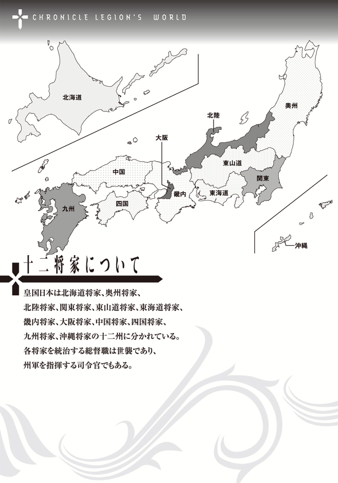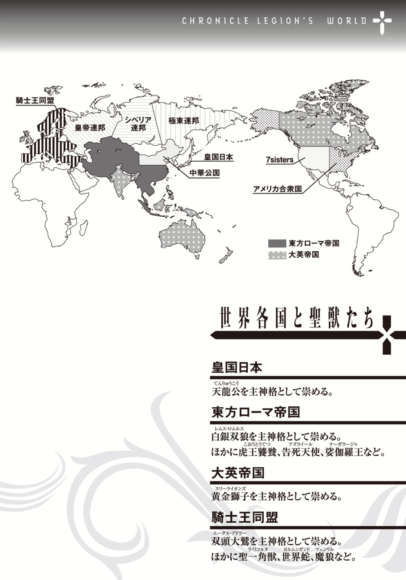 Некоторые люди начали обретать мистические силы, названные "Легионом". Таких людей зовут "Шевалье", а сила, как понятно из названия, позволяет им призывать легионы солдат, которые будут за них бороться. Легионы стали главной боевой единицей всех государств, т.к. любое обычное оружие их не берет, а противостоять легионам могут только другие легионы и особые артефакты древних героев (мечи там, ага). И вот один из таких "возрожденных", а именно Юлий Цезарь, основал свою Римскую Империю и пошел завоевывать другие земли, при помощи легионов. Под предлогом того, что он спасает Японию, он уничтожил все военные американские базы в Японии, тем самым покорив Японию и став ее серым кардиналом.