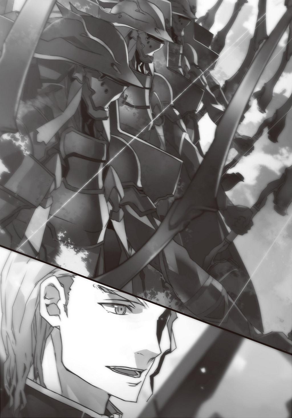 Больше половины главы на сражении двух Шевалье, при том, что о герое вообще ни словом Примерно половина тома акцентировалась не на ГГ, а на вторженцах из Британской Империи (Черный Принц и другие шевалье) и других различных героях, вроде Цезаря или Рикки.