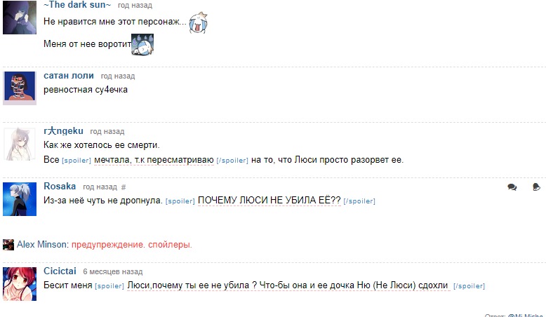 , жиза. Находить оправдания убийствам Люси, но осуждать обычную бабскую влюблённость Юки. Реально шиза