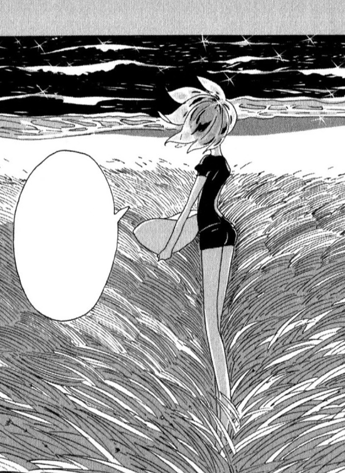 1) Он обозначил плавную линию тела (хотя ширина плеч практически всегда соответствует ширине бёдер) и добавил "очарования" и "красоты" в образ кристаллов. В то же время он заставил их вместо нейтрального (но чаще всё-таки девичьего) "watashi" употреблять более мужественное "boku" и "ore". Да, девушки тоже используют "boku", но подобное обращение здесь отлично "уравновешивает" "нежную" внешность кристаллов и их чуть грубоватое самовыражение.