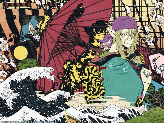 Эстетика древней Японии внутри тайтла и эстетика авангардной рисовки самого тайтла, в которую не все могут. т.к. аудитория смотревших Мононоке делится на 2 лагеря: писающие кипятком от оригинальности картинки и жалующиеся на кровотечение из глаз из-за ее многоцветности и кривизны.