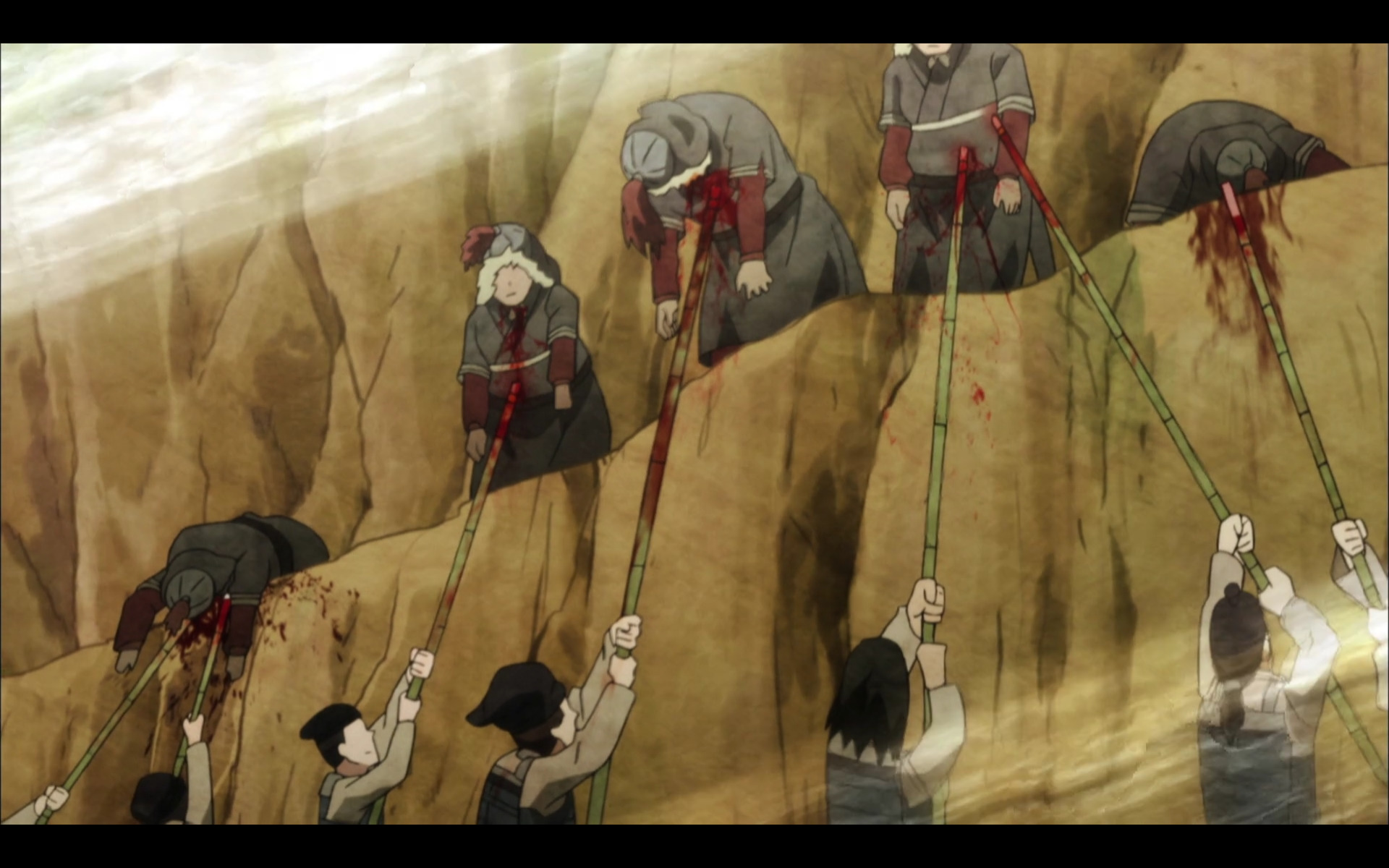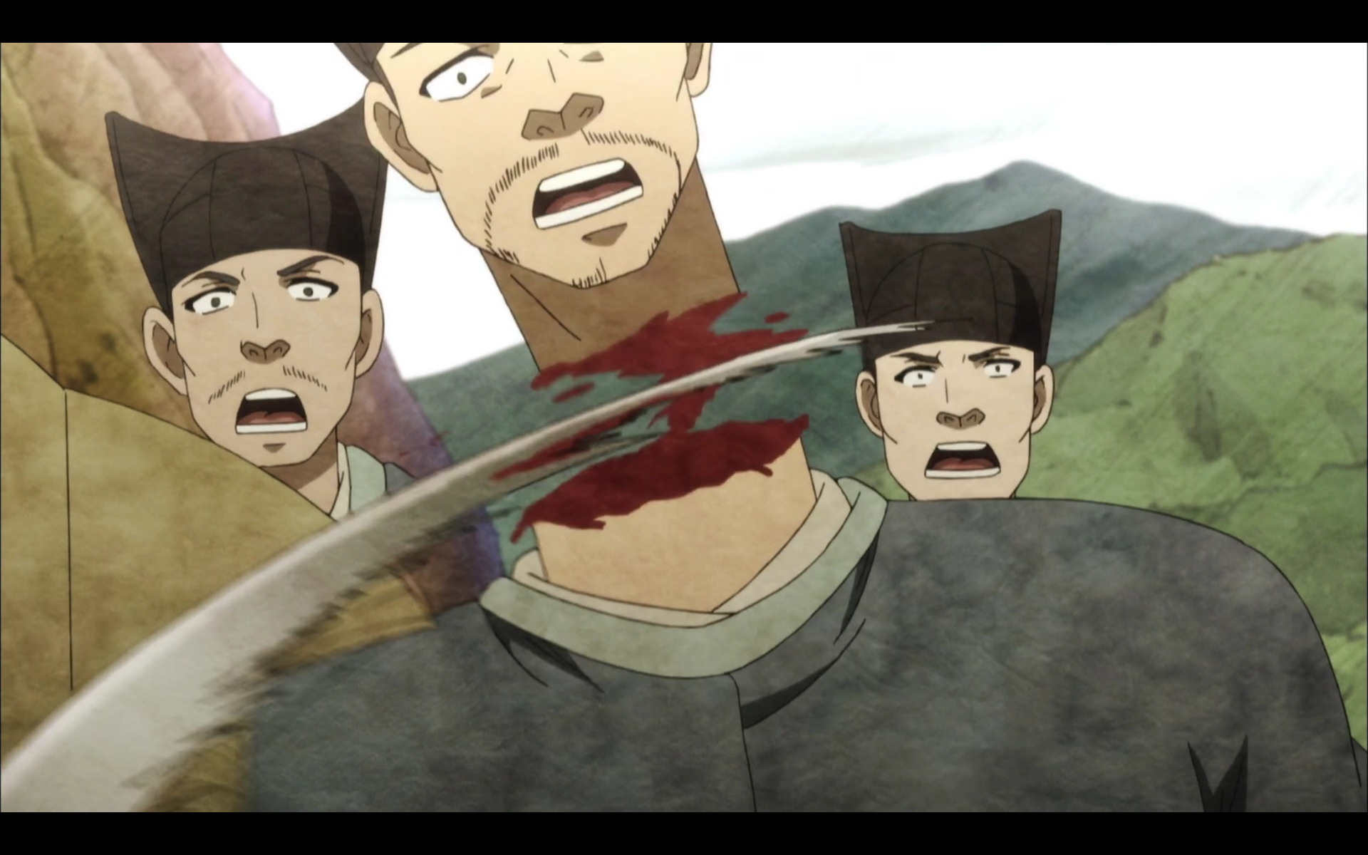 Людям рубили головы и руки, протыкали тела копьями и мечами, стреляли в них из пушек и луков, сжигали живьём, лапали женщин и убили ребёнка. Я должен спокойно смотреть на этот явно бредовый PG-13 рейтинг с MAL? Ведь это очевидное R-17. У Arslan Senki (TV) и Overlord стоит R-17, хотя в них и близко ничего настолько жестоко не было, что уж говорить про Kuromukuro, там из-за двух сцен пятесекундых рейтинг повысили 24 серийному сериалу.