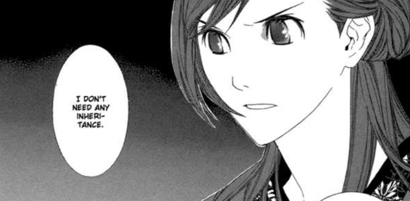 Это рассказ из не-яойной манги на этот раз, "Адекан". И поскольку это интрига, я не буду называть главу или вставлять слишком очевидные арты (хотя хочется). Но если коротко, то начинается всё практически так же за одним исключением: матери нужна девочка, поэтому, когда рождается сын, а надежды на второго ребёнка нет, она начинает обманывать всех вокруг и заставлять сына подчиняться её правилам. Однако через какое-то время - вух! - и у неё всё-таки рождается ребёнок, да и никто иной, как девочка! Сын тут же становится бесполезен, но вот проблема - обман раскрывать ни в коем случае нельзя. Поэтому парню приходится продолжать играть из себя примерную дочку и всеми силами сдерживать все свои порывы воспротивиться властной матери. И всё шло более-менее неплохо, пока и здесь мать не заигралась и не решила, что пора бы старшую "дочку" пристроить, и нашла ей богатого жениха. Мало того, что парня теперь ещё и замуж собирались отдавать, так при этом потенциальный супруг был в курсе его обстоятельств и, похоже, находил это весьма увлекательным. И к чему это привело? В общем, наш гг стал преступником.
