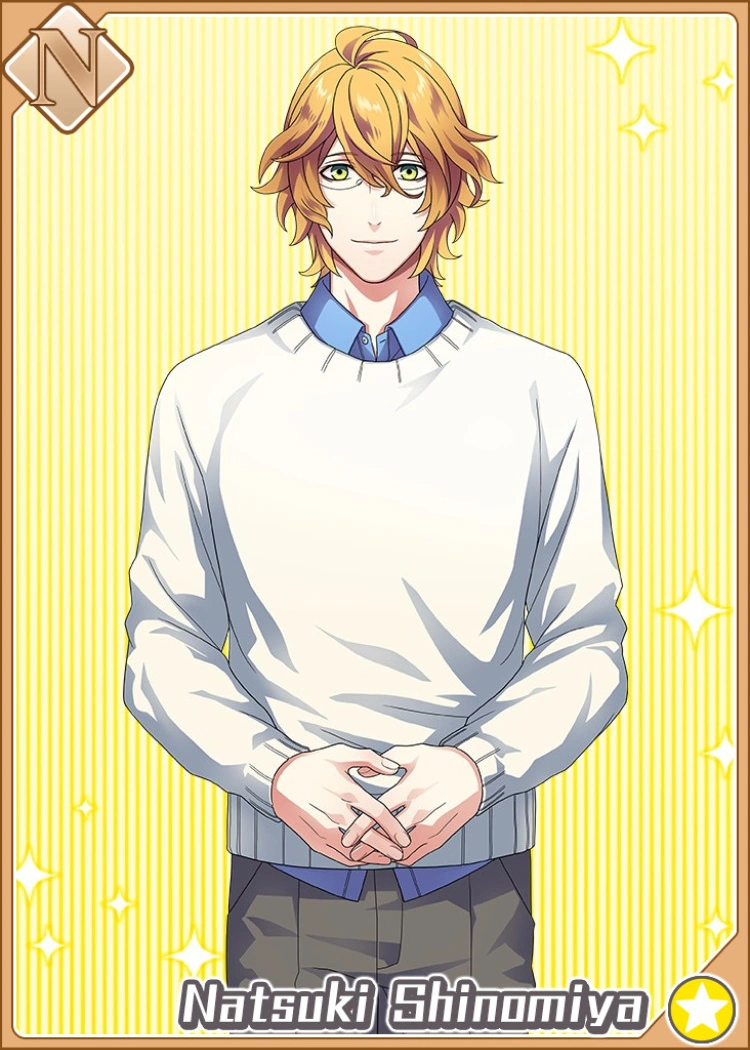 навевает воспоминания о Клиа, кхмМдаа, и примерно по той причине от него ждёшь какой-то мега-тёмной стороны. Он сладкий. Он приторно сладкий. Могу представить, как он, сложив как обычно ручки и улыбнувшись, своим сладостным голоском говорит какие-нибудь гадости. Но нет, он на самом деле просто милый желешка. К этому тяжело было привыкать. Почти как с Макото (только тут сложнее) - эти персонажи настолько добры, что ты ждёшь от них подвоха (и гигантского скелета в шкафу). Но прелесть в том, что никакого подвоха нет, хм Х))*возможно мне всё-таки стоило довериться своему инстинкту, а не обезоруживающей улыбке Нацуки ._.