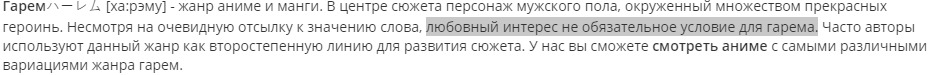 @Aquila, У Окабэ нет гарема, если говорить конкретно об аниме, а в новеле, там еще с натяжкой можно из-за выбора веток. Но здесь, наличие женских персонажей еще не создает Гарем, когда, по факту, влюблена в него только одна.@Пользователь удалён