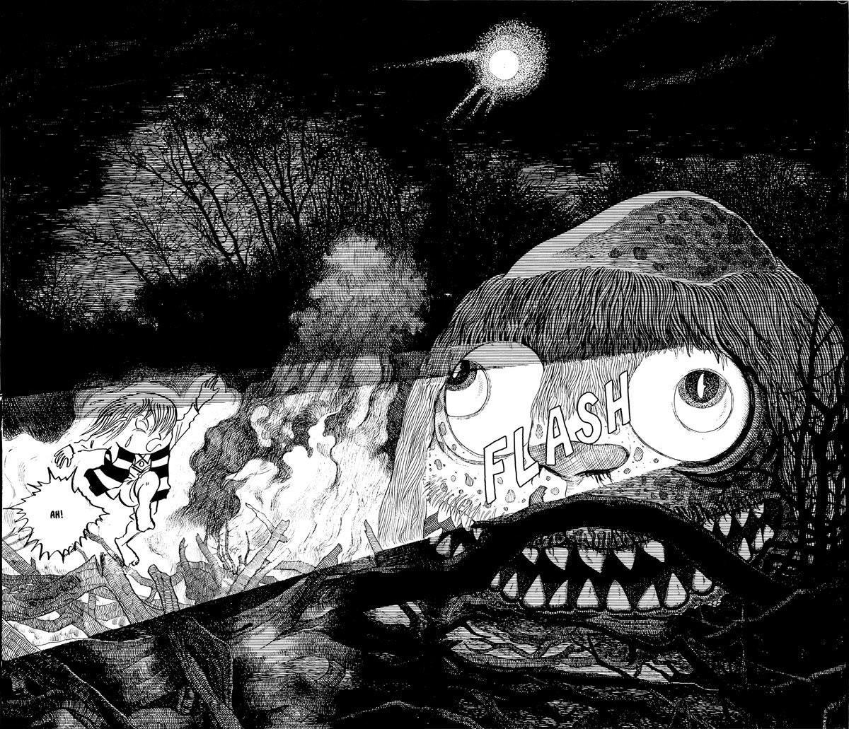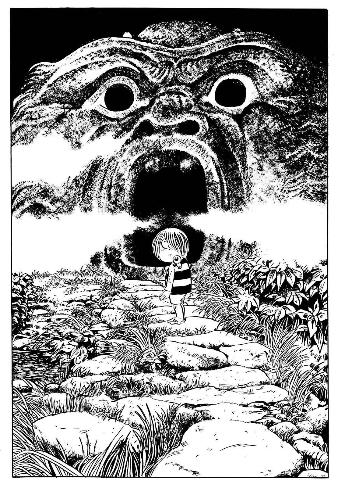Недавно прочитал несколько глав из серии GeGeGe no Kitarou (и Hakaba Kitaro). У Мидзуки крутейший графон. Понятно, реалистичные детальные изображения классные, но мне кажется, у него есть еще какая-то особенность - у меня лично было ощущение, что некоторые фреймы прям объемные, при этом даже самые обычные. Зачатую фишка в том, что мультяшные персонажи находятся в реалистично нарисованном окружении, но это проявляется не только в таких рисунках. Правда, сканы, которые можно почитать онлайн, особенно средненького качества, кажется, так себе передают такой эффект. Сравнивал некоторые страницы и к сожалению нет того чувства, что дальше страницы что-то есть... Но в некоторых изображения на мой взгляд все равно есть что-то такое Кстати снова парк Bomarzo, как в Manie-Manie: Meikyuu Monogatari)