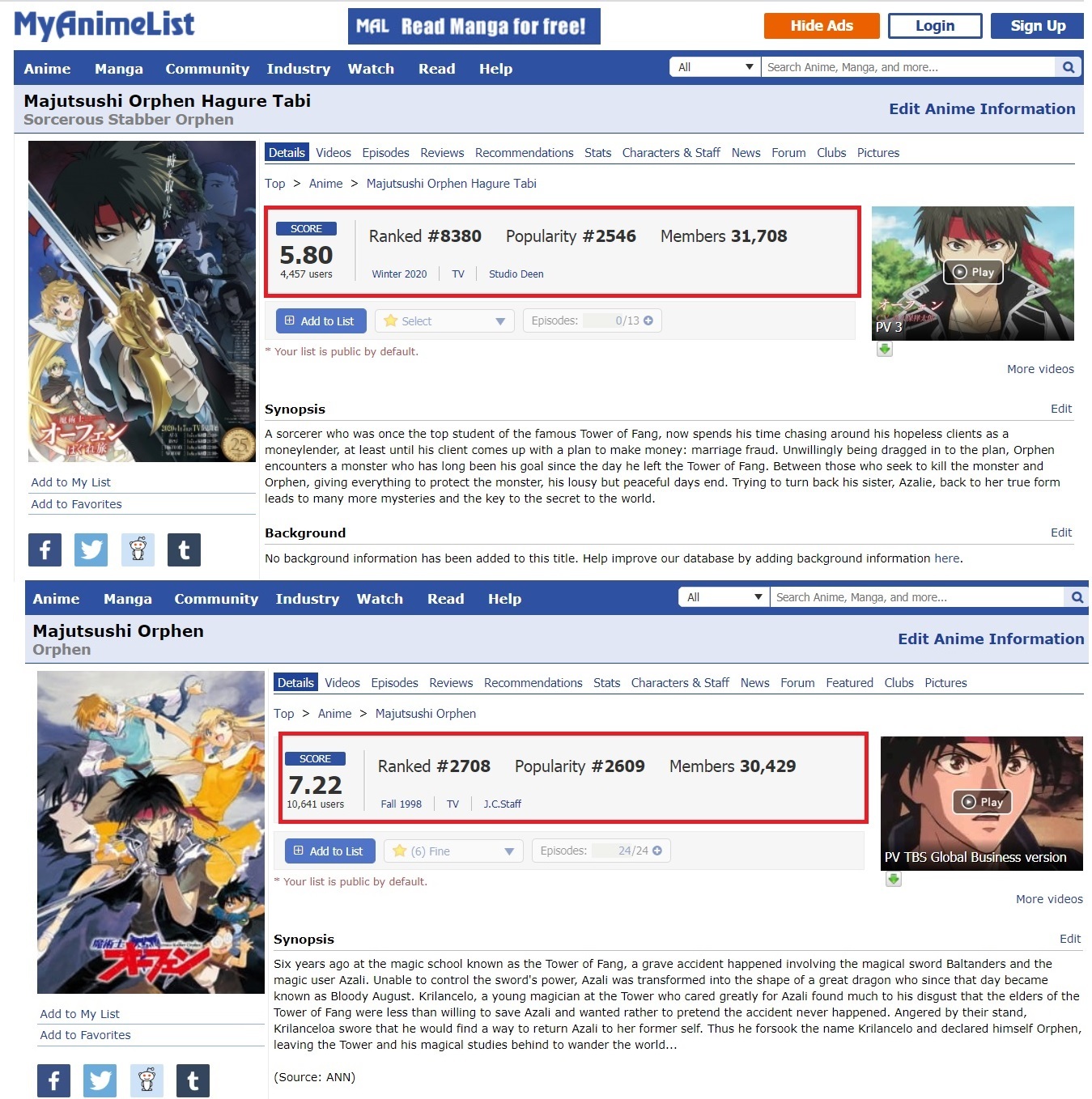 @Biktor231993, А как тебе такое ?? Даже за рубежом этот сериал разругали, учитывая что там более адекватное комьюнити, да и люди читали ранобэ. Причём там Studio Deen, так-же не любят и относятся к ней неравнодушно. Я даже больше скажу, за рубежом ценят классику куда сильнее чем у нас.