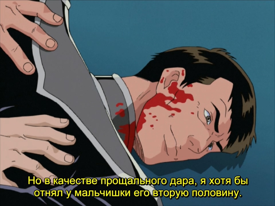 Разумеется, не стоило надеяться, что какой-то второстепенный персонаж сможет навредить блондинчику, надежно прикрытому сюжетной броней. До этого с любопытством наблюдавшие, как пленный копается в кишках у трупа, адмиралы внезапно ожили и наперебой бросились прикрывать своего командира, однако этого и не потребовалось — Ансбах умудрился с пяти метров промазать из гранатомета. Такой себе Хитман, прямо скажем. Но тут выяснилось, что он косплеил вовсе не агента 47, а агента 007! Когда рыжик попытался его схватить, он активировал секретное кольцо со встроенным лазером и ловко проделал в Кирхайсе пару новых дырок. [Тут должна была быть картинка с анимешным Q из бондианы, но в процессе поисков я внезапно выяснил насколько они с Бондом близки. Не повторяйте моих ошибок!] Рыжик отбывает в Вальгаллу, брызгая кетчупом на дорогой ковер, а я снимаю шляпу перед создателями тайтла. Без шуток, у этих парней все-таки есть яйца, раз им хватило смелости убить одного из главных героев истории и не лепить из этого драму вселенского масштаба. Впрочем, жизнь продолжается. Пока бищик сидит в печали у гроба своей второй половинки, его штаб занимается вторым любимым делом имперцев (первое — разумеется, бухать, не просыхая). Если что, второй половинкой его считали сами персонажи, никаких грязных намеков о покойном с моей стороны