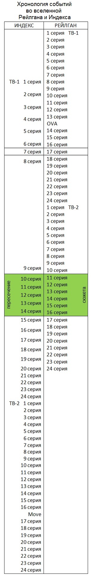 , а акселератор аниме между 1 и 2 сезоном индекса (Но его не обязательно...) а 3 сезон индекса желательно через оригинал ознакомится потому что там всё плохо.