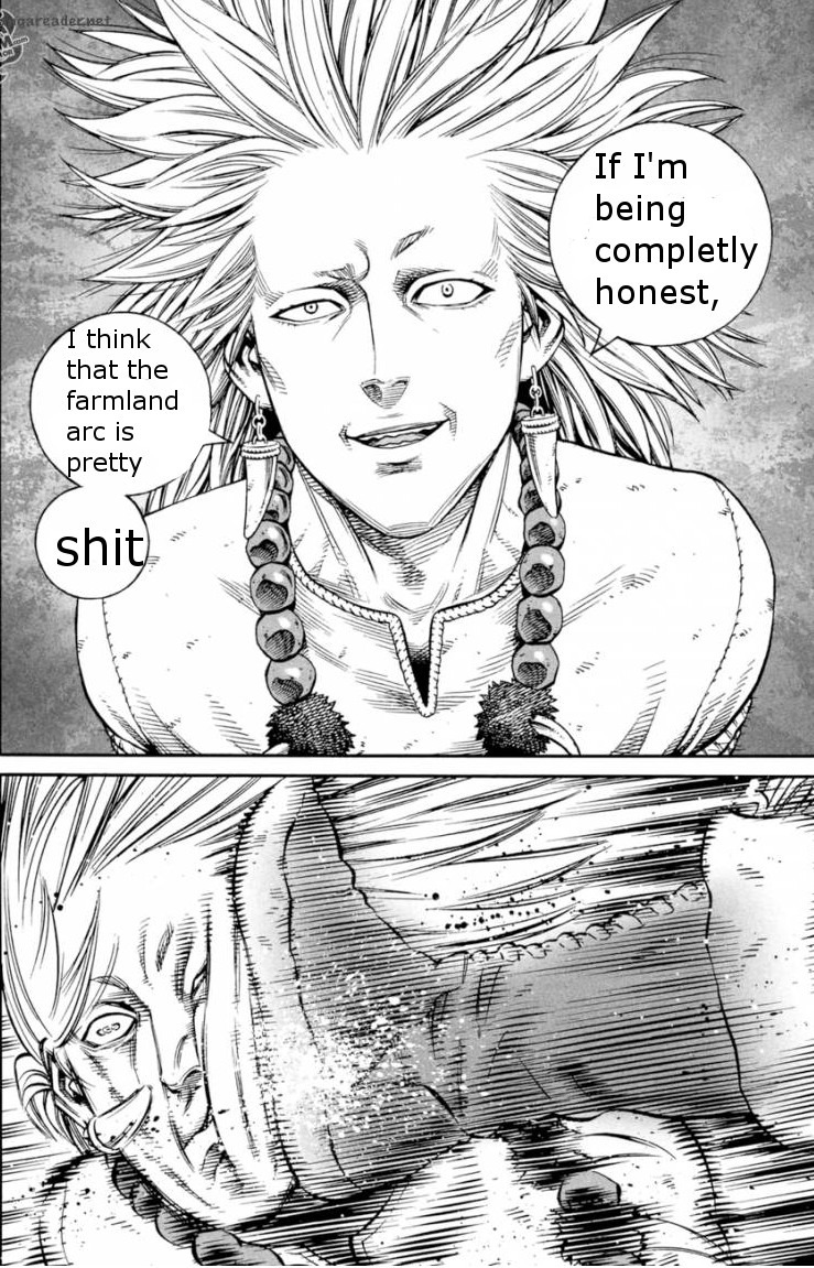 @Yamanade, я прост винланд сагу очень давно в онгоинге читаю (раньше ванписа нпрмр начала), так что видела много отзывов. Ты недавно и застала недовольство по поводу балтийского моря. Хотя по мне в этой арке из реально неочень темы - гарм лол. А вот по поводу ласт глав я уже сама недовольна. А часть которую в народе позвали фармлэнд сагой моя любимая в манге.