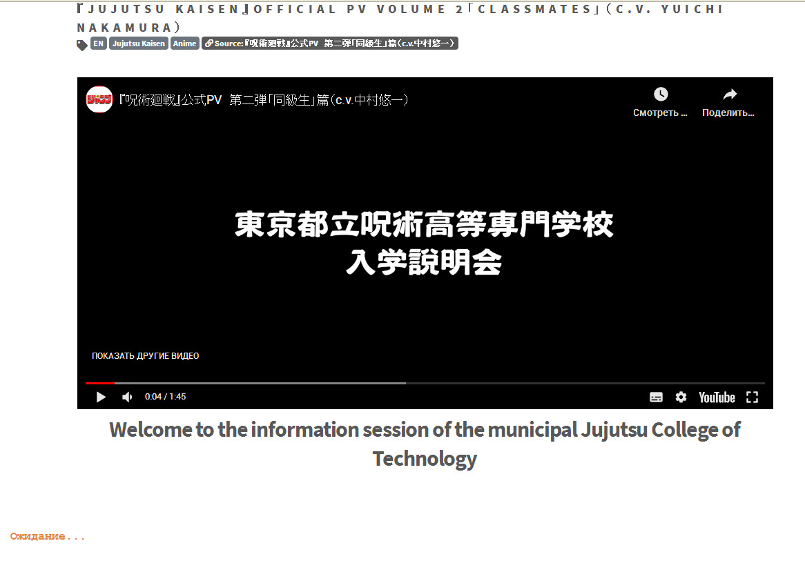 Открываем любую видяху из переведенных Loadtup, пока она играет, снизу его перевода будет текст "Ожидание..."