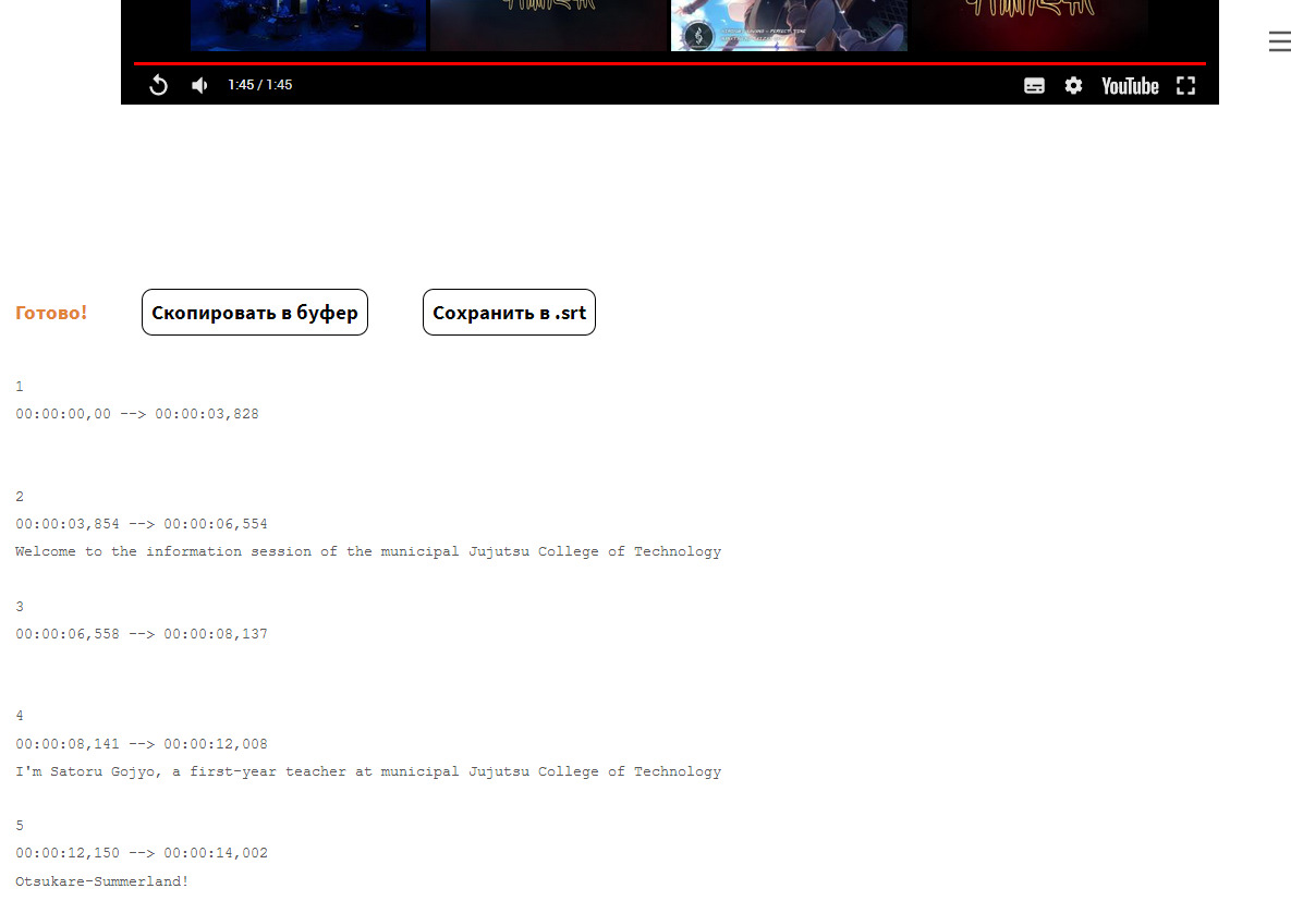 (обычно несколько секунд), чтобы прогрузились скрипты. С появлением видео, как в конце работы первой версии скрипта, появятся строки перевода и всё те же две кнопки на выбор - копировать или загрузить