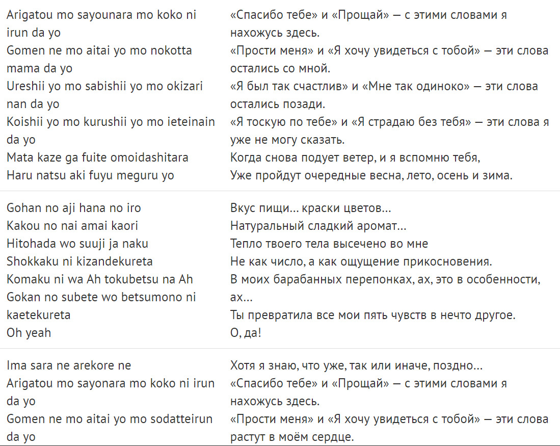 @Animeretard, вот и мдэ. Не лить же воду, что бы вы еще похлеще разгулялись и строчили тут отклоняясь от заданной траектории. Теперь мы о размере заботимся? Помнится, что вам уже сказали, что надо попадать в такт движению разговора на экрана и эта типа такая жертва, но вы продолжаете гнуть об отвратительном перевода, а тут вы вспомнили, что размер важен! И что мне расскажет перевод песен? Обычная романтическая песня для которой и перевод не нужен.