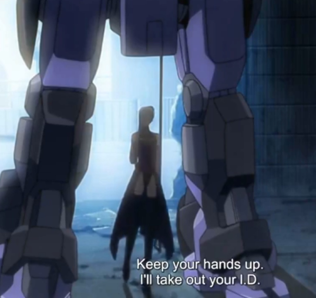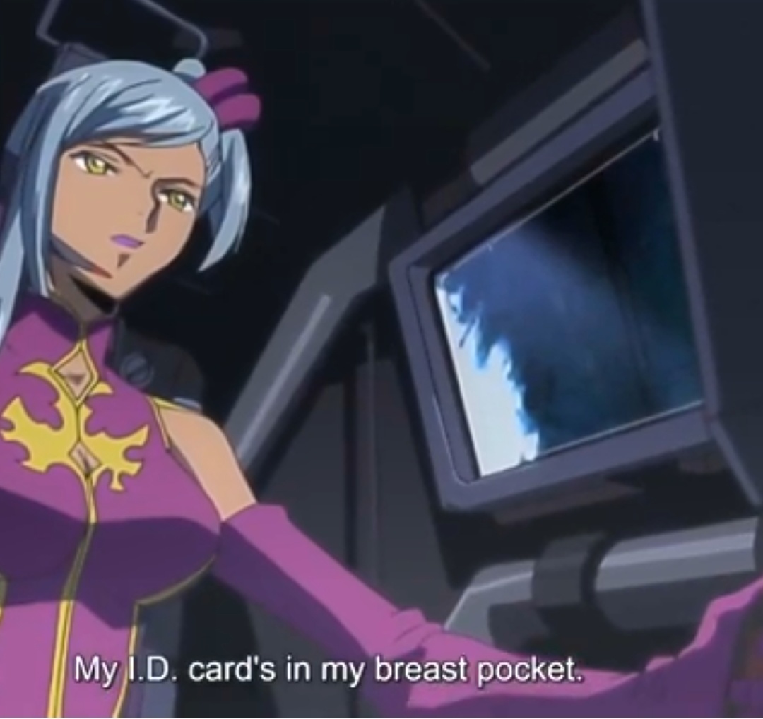@moeru, @JashOFHop_, Решил тут пересмотреть сцену и реальная её непроходимая тупость оказалась даже хуже чем я помню. Видимо даже моя память воююет против Код Гиасс сглаживая деграданство её сюжета. Во-первых как я и говорил кабина мехов кроме той серии где нужно подсадить туда гостя обрисована похожей на кабину пилота вертолёта - плотно скомпонованной вокруг оператора мехи. Во-вторых положили даже не простых солдат, а спецназ так что прифегивание, которое я помню и о котором писал ранее имеет ещё больший смысл. Кто-то уложил толпу спецназа. В-третьих Виолета начала разговор с угроз, дополнив их пулемётной очередью. Что вполне логично учитывая, обстоятельства. В-четвёртых лелуш фейлится (я это почти забыл, так как этот фейл как раз таки органичен и простителен) начиная разговор с приказа с уже поставленным голосом "убираться отсюда". И лишь потом начинает идти на попятую и кем-то там представляться. Причём да, он представляется сыном герцога (каким конкретно не важно, так как Вайолета всё равно не узнала фамилию). То есть всё просто кричит!! о искуственности, неестественности ситуации. И надо быть полным клиническим идиотом что бы покинуть мех. Ну или суицидником. Ну или фанатом Код Гиасса видимо.