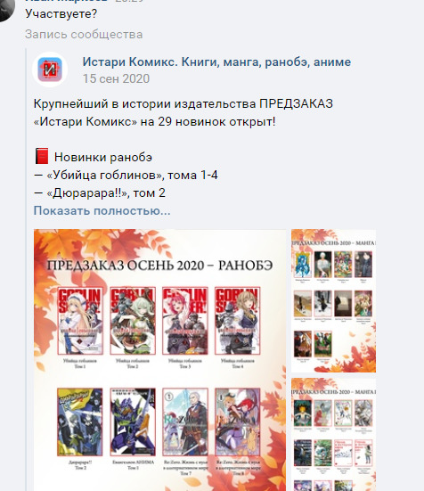 серьезно? Только сейчас? А что, только сейчас новогодние каникулы закончились? Или всё же полтора месяца назад?)) Откуда-то в ЧГ есть 6 том Ванписа и Наруто, которые полторы недели назад из печати вышли, и Бездари наверно просто денег не хотят, вот и не торопятся @Ferrerios, я там забанен, но у меня есть скрины с чатика или можешь в их группе по ключевым словам найти
