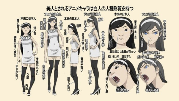 Сначала приведи аргументы, почему эта картинка не верна. Она все четко показывает какие япошки унтерменши на самом деле, и как они старательно делают персонажей аниме похожим на европейцев.