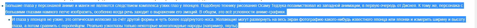 Кстати, ты там выше в треде картинку запостил с японского двача - нарисованную японскими двачерами, чтобы бэйтить и глумиться над расистскими гайдзинами, всерьез готовыми верить, что якобы японцы из японских мультиков не японцы.