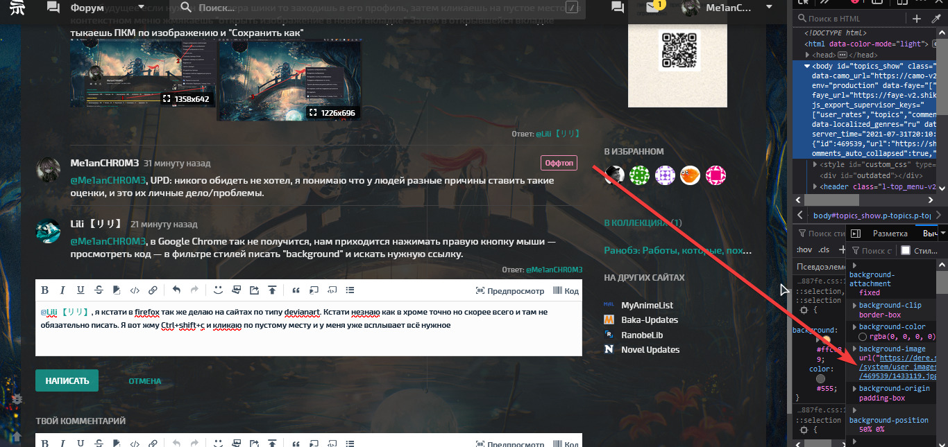 @Midjourney, я кстати в firefox так же делаю на сайтах по типу devianart. Кстати незнаю как в хроме точно но скорее всего и там не обязательно писать. Я вот жму Ctrl+shift+c и кликаю по пустому месту и у меня уже всплывает всё нужное@Midjourney