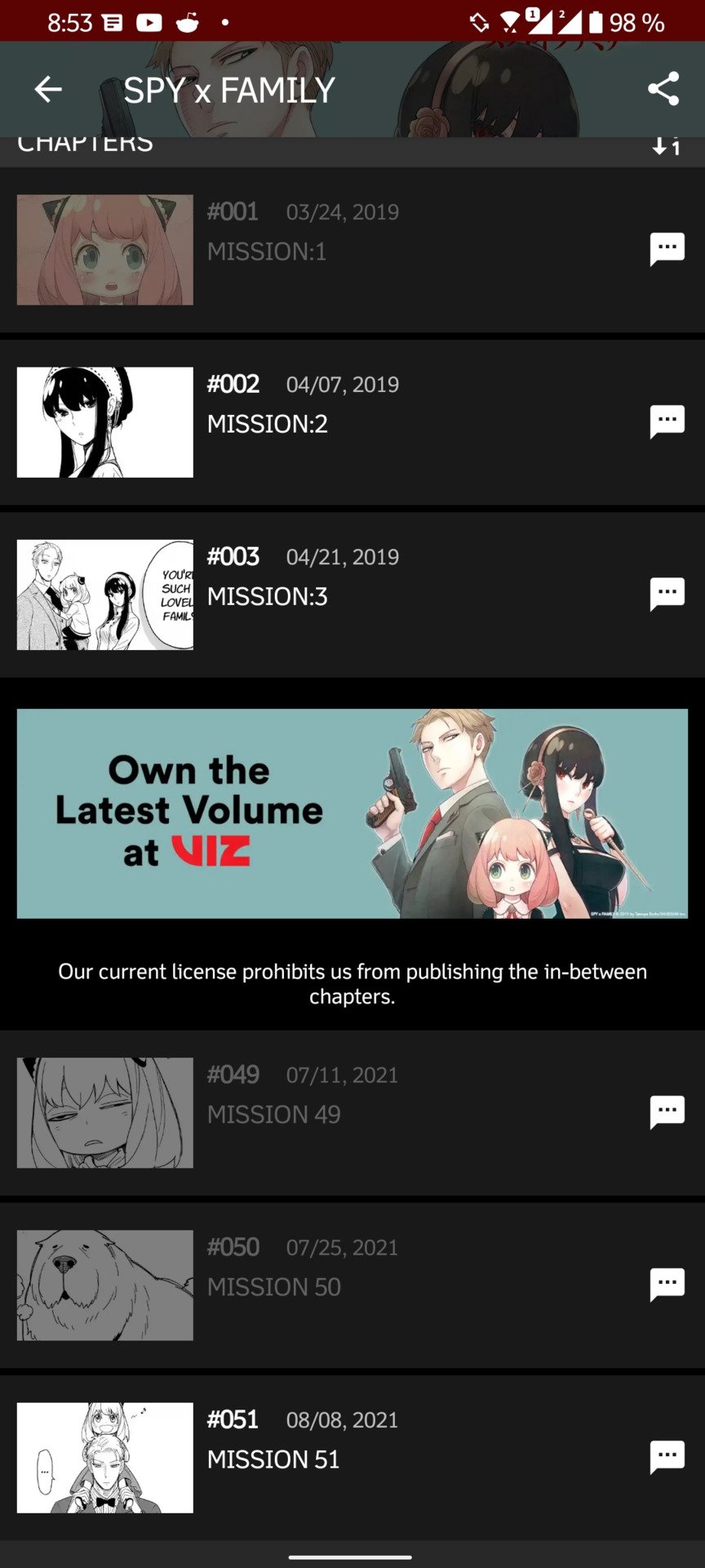 Нет. Но это не отменяет факта что это именно сотрудники Истари лазают по сети и удаляют ВСЕ главы. А ещё эти трусливые переводчики бесят которые ни хрена не понимают что чтение на этом мангаплюс ни хрена не плюс т.к. если не читаешь онгоингом то ты в пролёте. А те кто в пролёте пойдут напрягать свой мозг английским с переводчиком в руках, где же тут плюсы и удобства? Лицензионщики в РФ это одна сплошная головная боль.