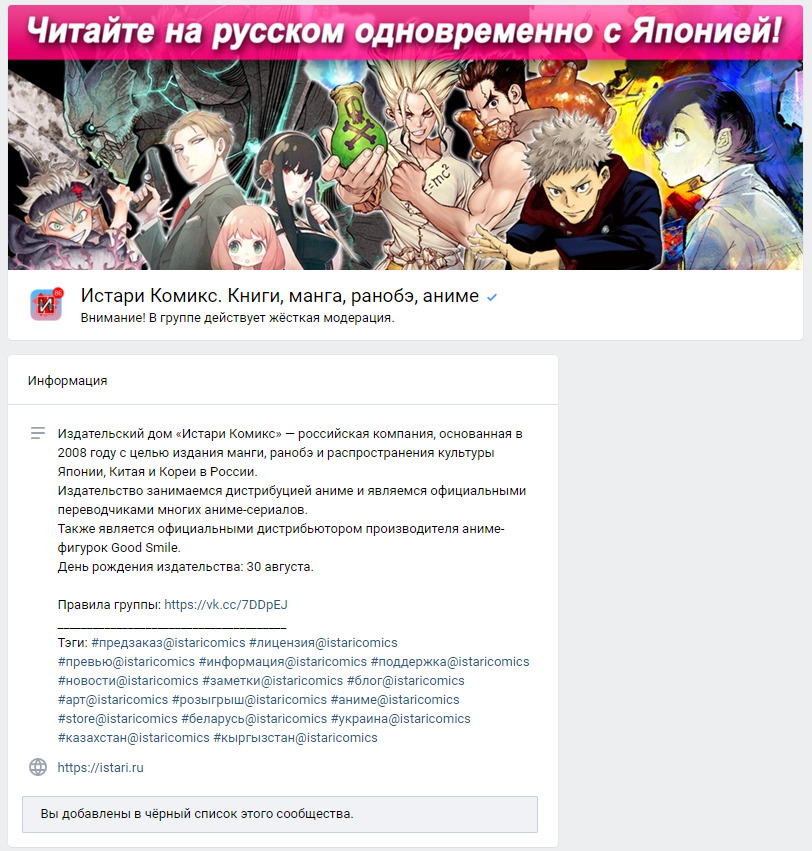 , Они просто мониторят другие группы. Если ты в условных группах в вк на подобии шики, александрии, джема и тд - написал что-то плохое про истари - они банят тебя в группе. Это даже есть в их правилах группы
