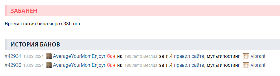 , впервые вижу срок бана на более 10 лет. По-видимому засрал уже всех.