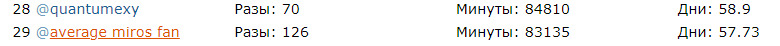 @Lipton De-Black Tea,@Lipton De-Black Tea, не благодари@HN71,@htcmobila,@Romantic, ля шо можу:Рейтинг банов по времени (1 место - максимальное время) + количество выданных банов