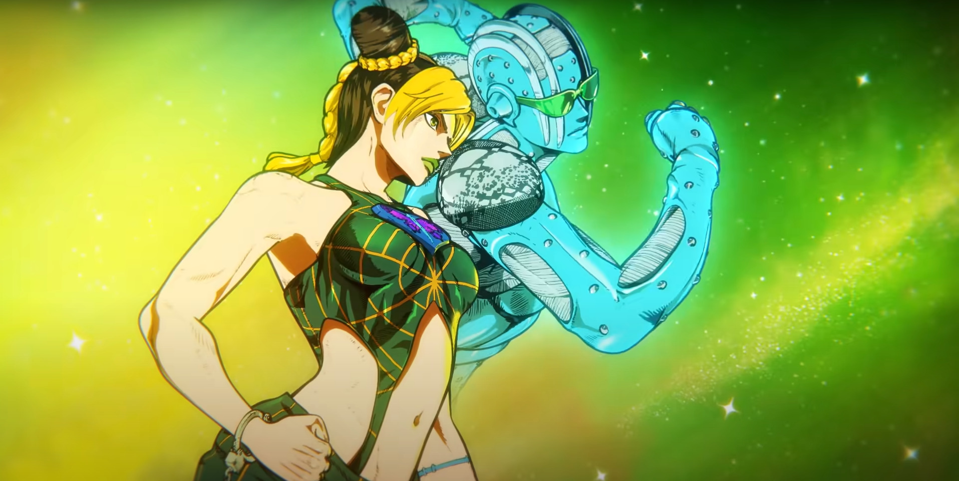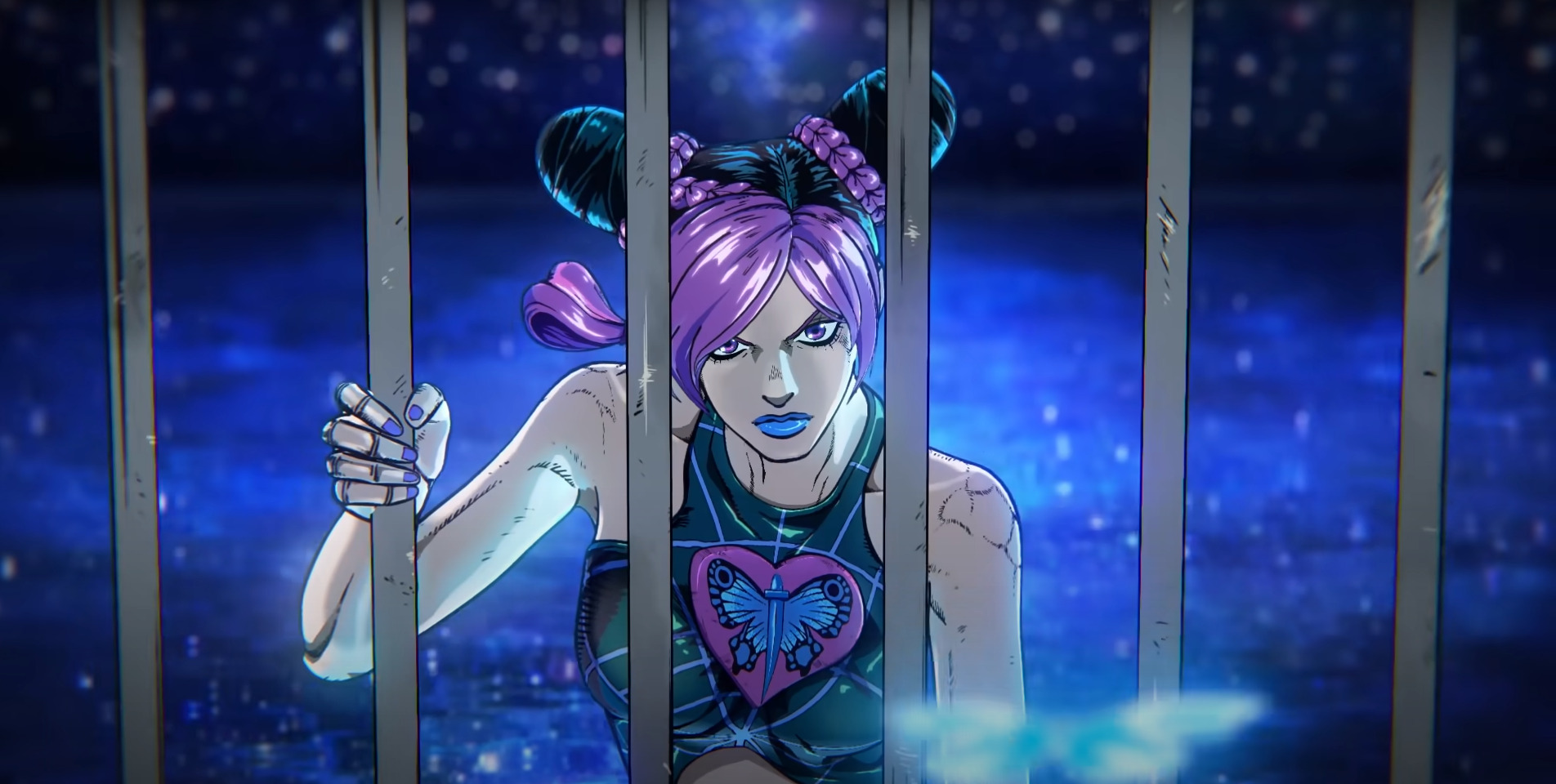 Джолин рвет наручники со стороны станда и руки на которой у нее тату бабочки. А на самой бабочки написано слово "Pray", что переводится как "молиться". Мало того, что символизм, так еще и олицетворяет то, что джолин искупает свои поступки прошлого и спасения отца. Я это так понял. Так еще и в самом финале, Пуччи получит рану именно от этой руки Джолин, что повлияет на исход! Араки и давиды... епаны ваш станд, вы лучшие! А Араки, такие люди, рождаются раз в тысячелетия. Твой вклад в искусство не переоценим!