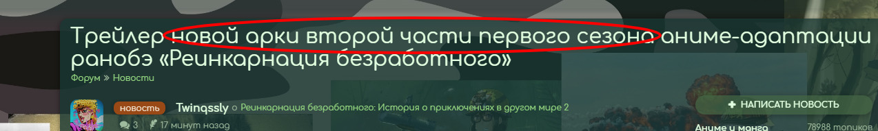 Трейлер новой арки второй части первого сезона аниме-адаптации ранобэ «Реинкарнация безработного»