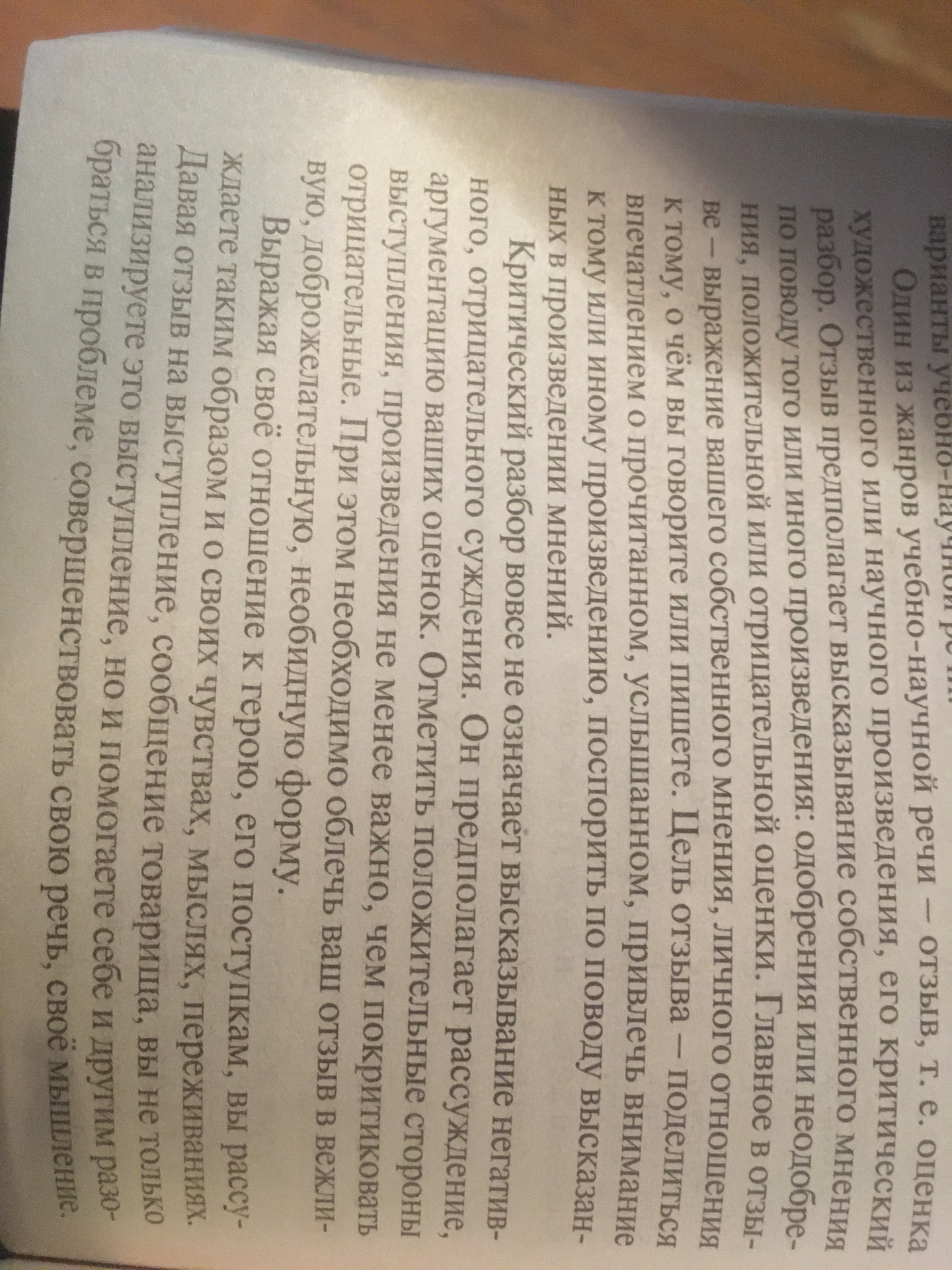 1. Критический отзыв о спектакле, концерте, научной или литературной работе.