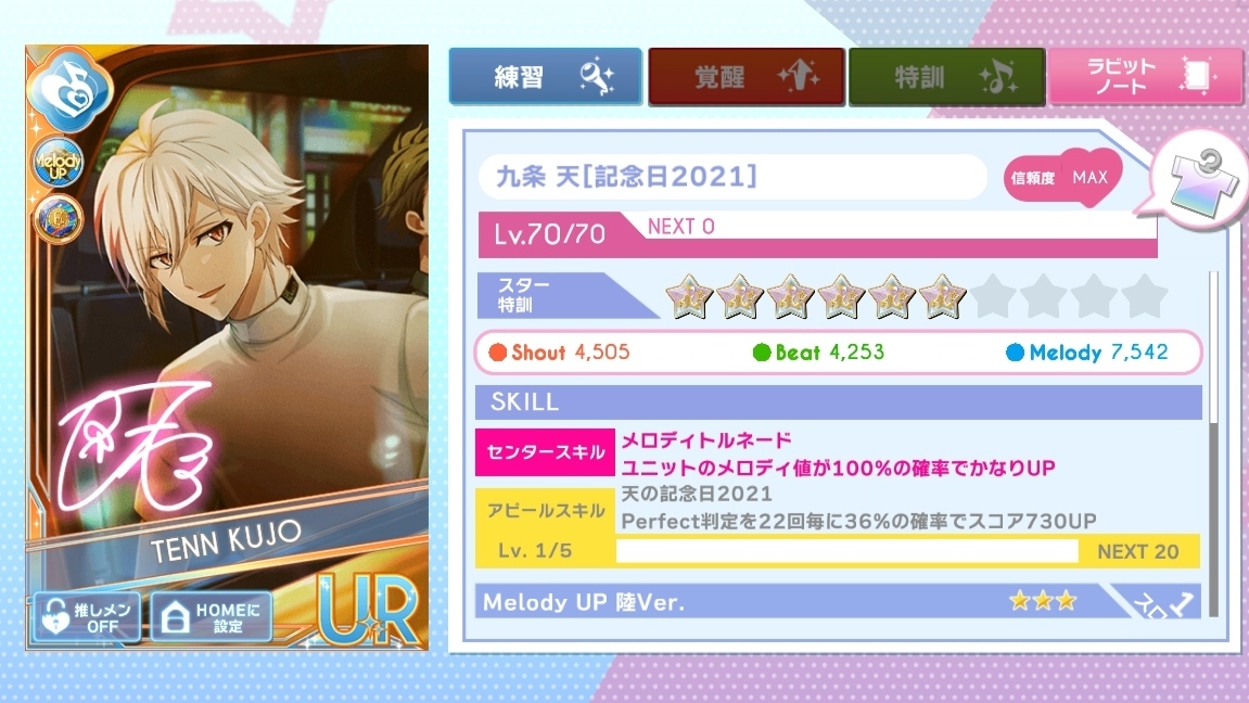 Карты с годовщин очень сильные (вай, оба наших Юки на первых местах) Расстроил CROSSING × US. Карты красивые + есть встроенная пятизвёздочные брошка. Но если прокачать такую карточку на максимум и добавить свою брошь, то она будет не особа сильная в моем случае эта карта стоит восьмой по счёту. Встроенная брошь есть ещё и у карт, где ребята в наушниках. Тоже не супер сильные карты, хотя парочкой я всё равно пользуюсь