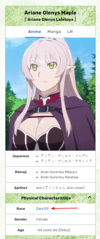 @Bobby Shmurda, @Negarent, ну это скорее всего в понимании именно данного тайтла она тёмная! судя по всему это определяется разницей цвета волос и глаз! у обычных эльфов глаза зелёные, волосы жёлтые\зелёные, а у тёмных глаза золотые, волосы розовые\фиолетовые. Ну и типа войны!