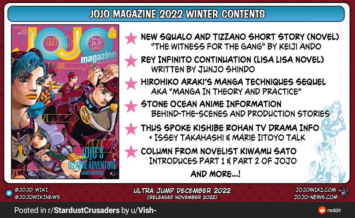 @OutherHeaven, не представляю когда ждать. Небольшой отдых превратился в бессрочный отдых. Поэтому, не понятно, делает Араки там что-то втихаря или отдыхает за столько лет работы. Только ждать.