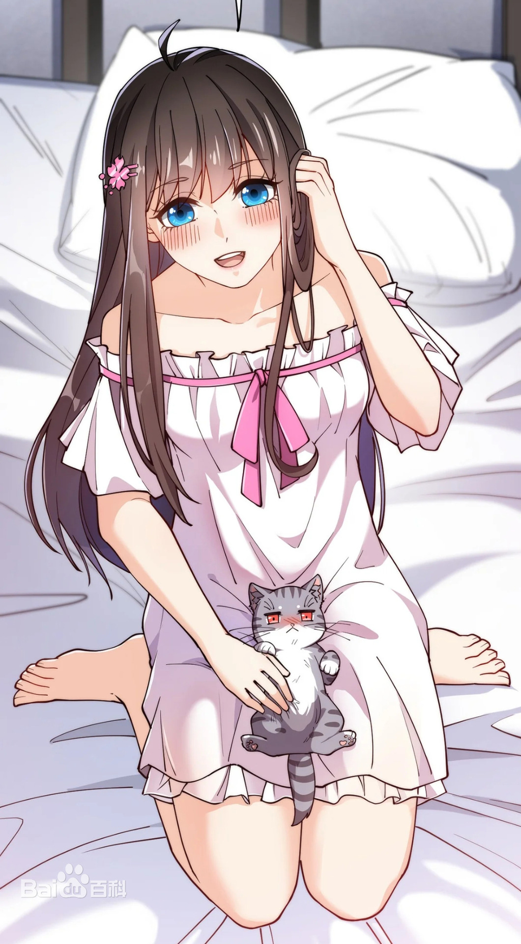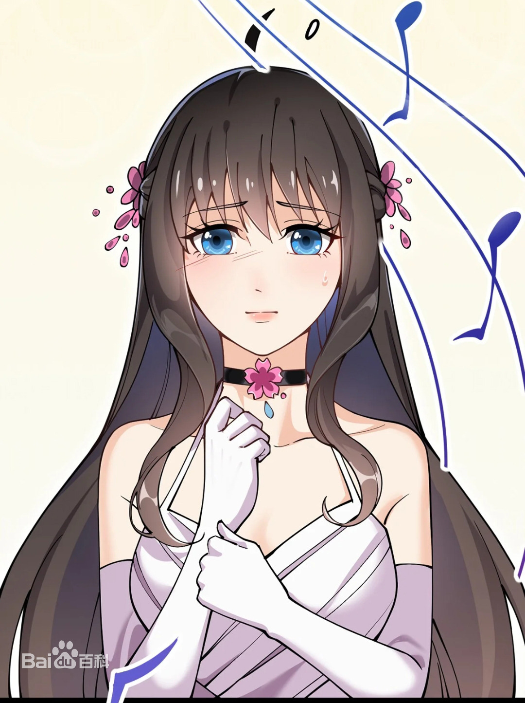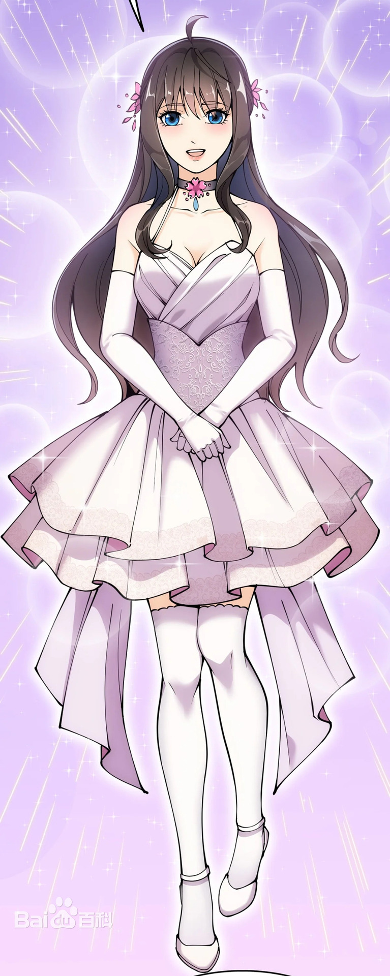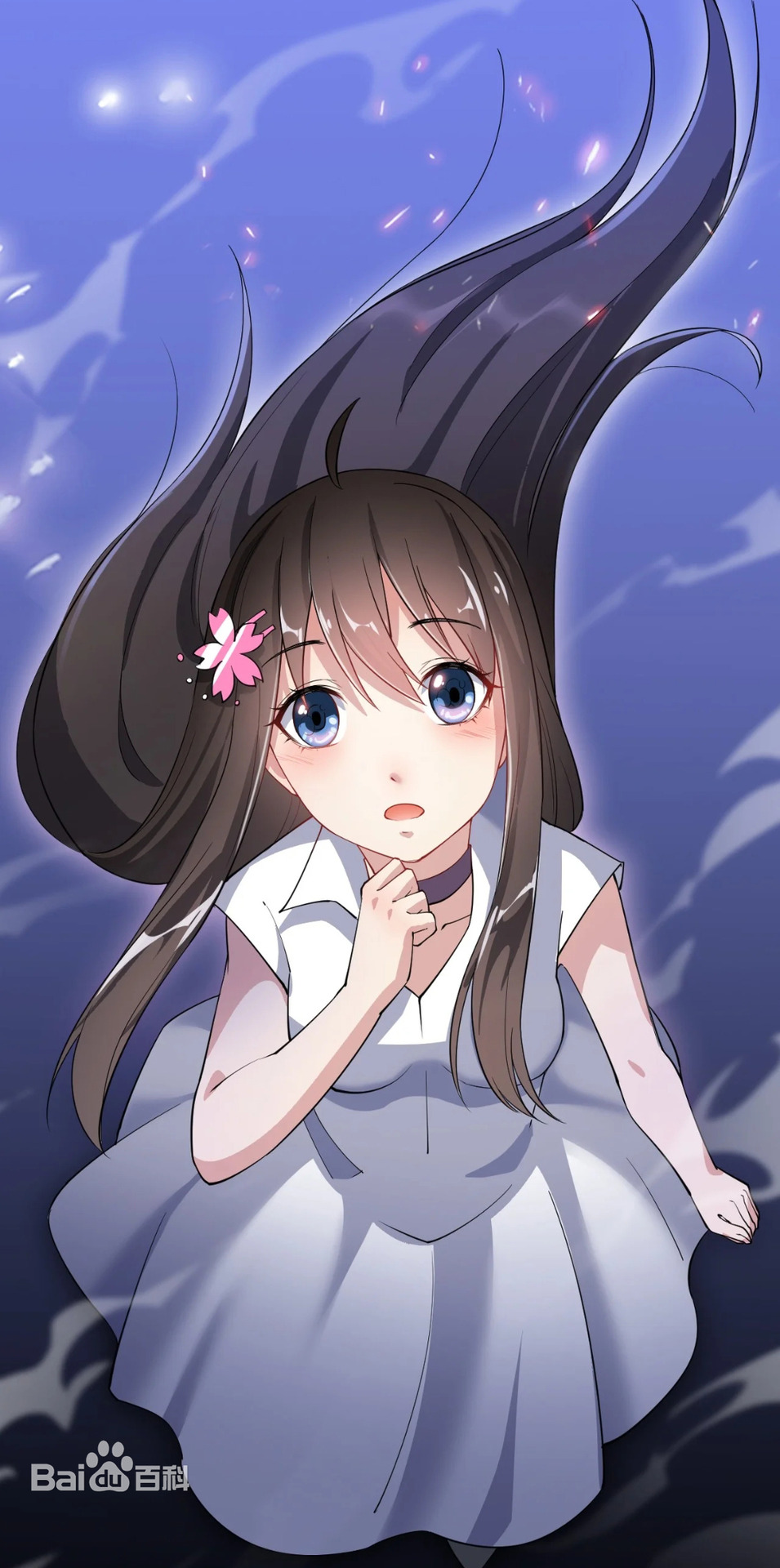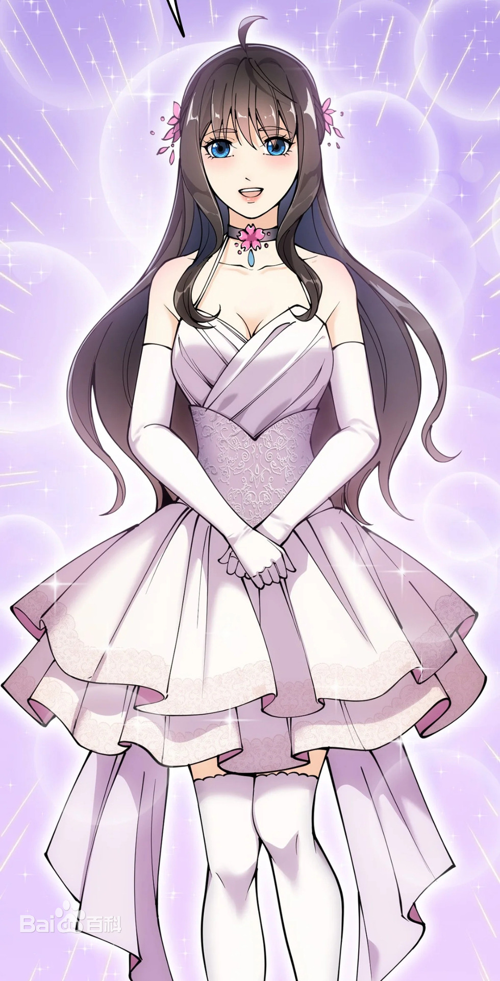 Описание: Красивая и симпатичная, с хорошей фигурой, черными волосами и голубыми зрачками. Всегда носит розовый аксессуар для волос в виде цветов вишни, который она иногда использует, чтобы завязать волосы в высокий хвост. За исключением школьной формы, она всегда носит белое платье с воротником и фиолетовое ожерелье из драгоценных камней в своей личной одежде.