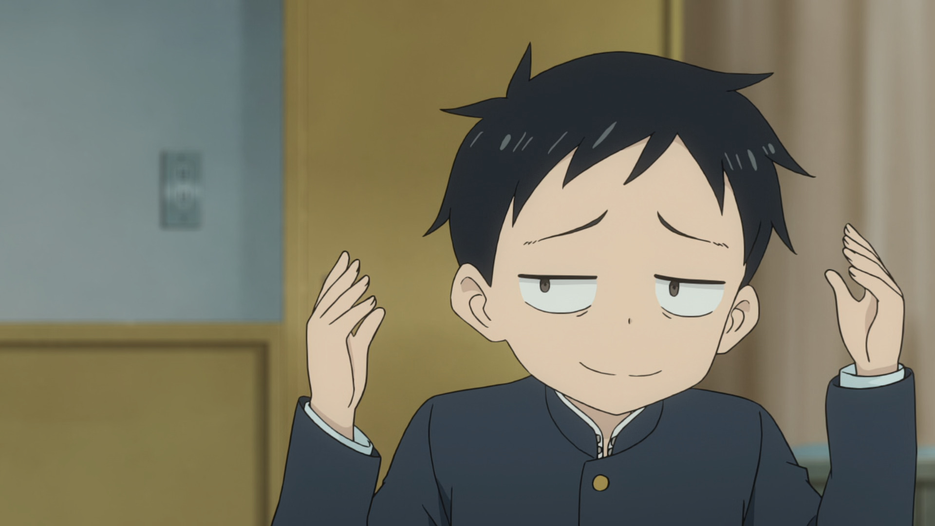 Он постоянно хочет мести, считая каждый смехуечек в свой адрес, на него орут преподы. При этом он не хочет ставить Такаги даже не то чтобы в неловкую ситуацию, не хочет даже сильно смущать. От чего его подначки "ты забыла зонтик? ты что, прогноз погоды не смотришь? Lox" или "гладить котиков? ты еще скажи, что они могут кому-то нравится, фу" будучи кошатником. Парень вообще базар в такие моменты не фильтрует, идея первее мысли.