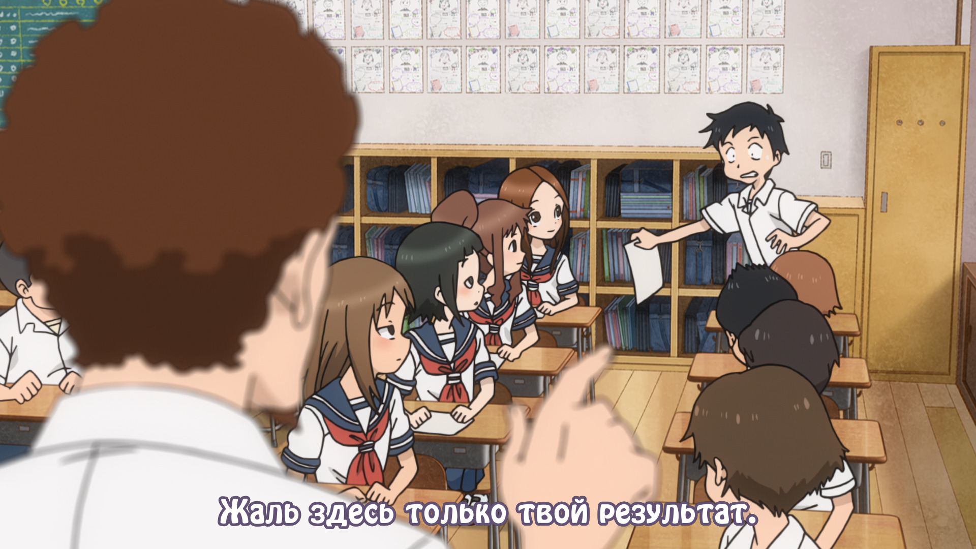 Каждый раз думаю, зачем я вообще смотрю ромкомы и романтику впринципе. Вот в Такаги она далеко не на первом плане и, вроде, довольно мило-безобидно. А по итогу задушнилась Я сутки подбирала слова, по итогу вылила поток мыслей в любимую котоигру и собрала это в кучку. Ребятам где-то лет по 13-14 (первый класс второго года), тот самый неразумный и наивный возраст. И, наверно, сразу выскажу многими не поддерживаемую мысль: мне не нравится взаимодействие Такаги и Нисикаты. Девочка потихоньку стебет парня, а тот бесится и пытается отомстить ценой всего. Правда, это не милые подколы парня, который тебе нравится. Он же уже кукухой двинулся, посмотрите в эти безумные глаза ТОЛЬКО из первой серии. И это лишь часть, мне потом скучно стало скринить уже эти синяки под глазами и ошалелый взгляд. Он постоянно хочет мести, считая каждый смехуечек в свой адрес, на него орут преподы. При этом он не хочет ставить Такаги даже не то чтобы в неловкую ситуацию, не хочет даже сильно смущать. От чего его подначки "ты забыла зонтик? ты что, прогноз погоды не смотришь? Lox" или "гладить котиков? ты еще скажи, что они могут кому-то нравится, фу" будучи кошатником. Парень вообще базар в такие моменты не фильтрует, идея первее мысли. А Такаги... серьезно, они провели весь день в библиотеке в подготовке к тесту по матеше (потому что мысли парня постоянно заняты мстёю), но по итогу оказалось, то тема вообще не та. Они что там учили? Ей не лень было? Нисиката от каждого действия ожидает удара, при этом продолжая общаться с мадам. Мне сложно сказать, что Такаги только стебет парня. Она беспокоится о нем, периодически что-то делает для него. НО. Я не постесняюсь назвать ее той еще вертихвосткой. Вот чего я не ожидала от нее, так это действий по типу: