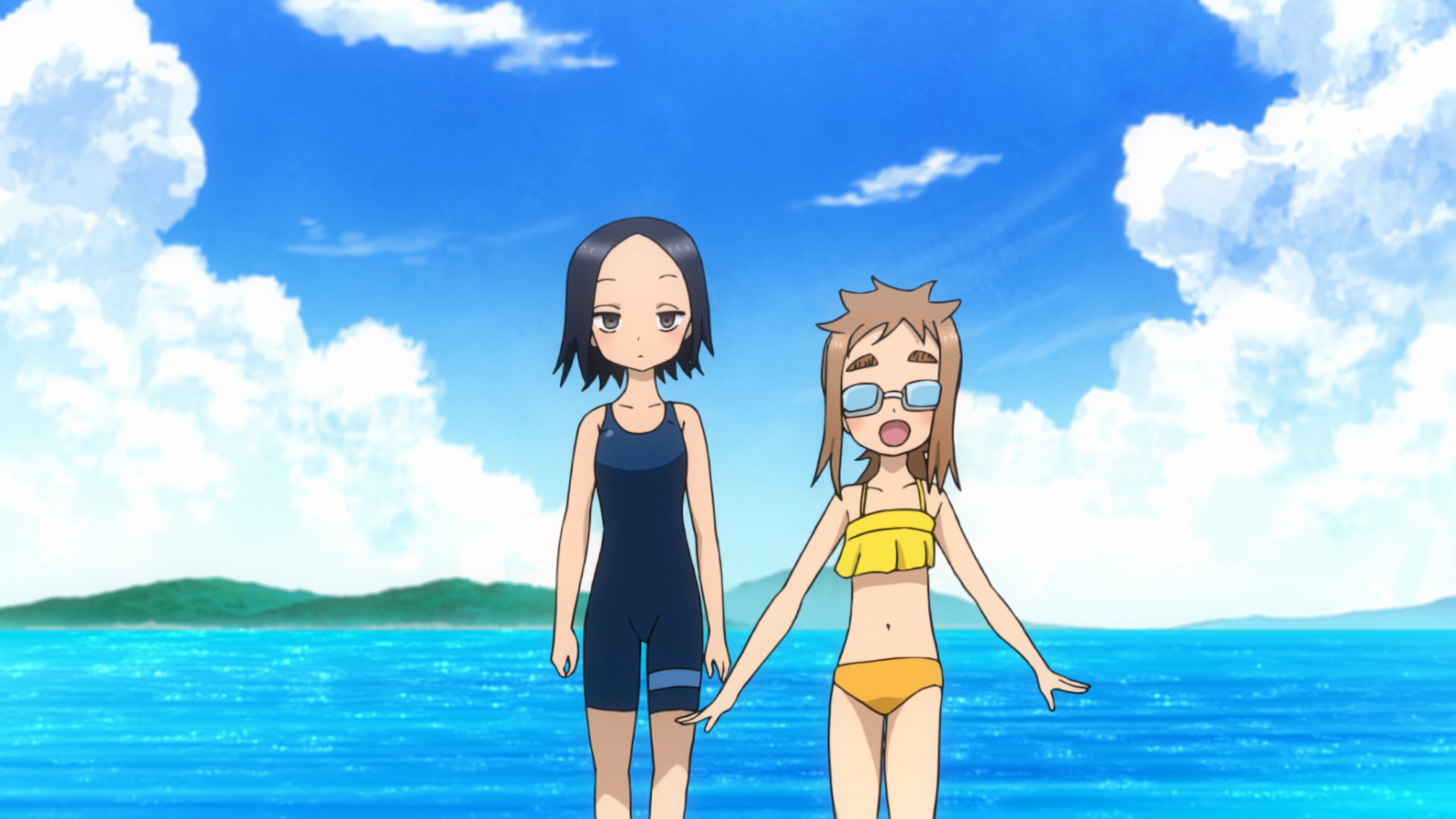 И так постоянно! Начать спрашивать про поцелуи и любовь, как определения словам, наклониться низко к гг и начать затирать что-то левое. И самое непонятное, что парниша отвечает, реагирует. Стокгольмский синдром, вам сюда. Мне не нравится романтизирование таких отношений. Потому что парень порой говорит "хватит", а девушка не шибко тормозит, пробивая поездом все свои идеи. Даже на велике кататься учились, потому что у нее там была какая-то идея, а потом парень чет приревновал к "прошлому" учителю героиню. Когда она сказала гулять с ней вместо серии любимого аниме, у меня аж йокнуло. Я всё короче. Вставки про троицу подружек были забавными и как-то более приземленными чтоль. Офигенный купальник кстати у черненькой.