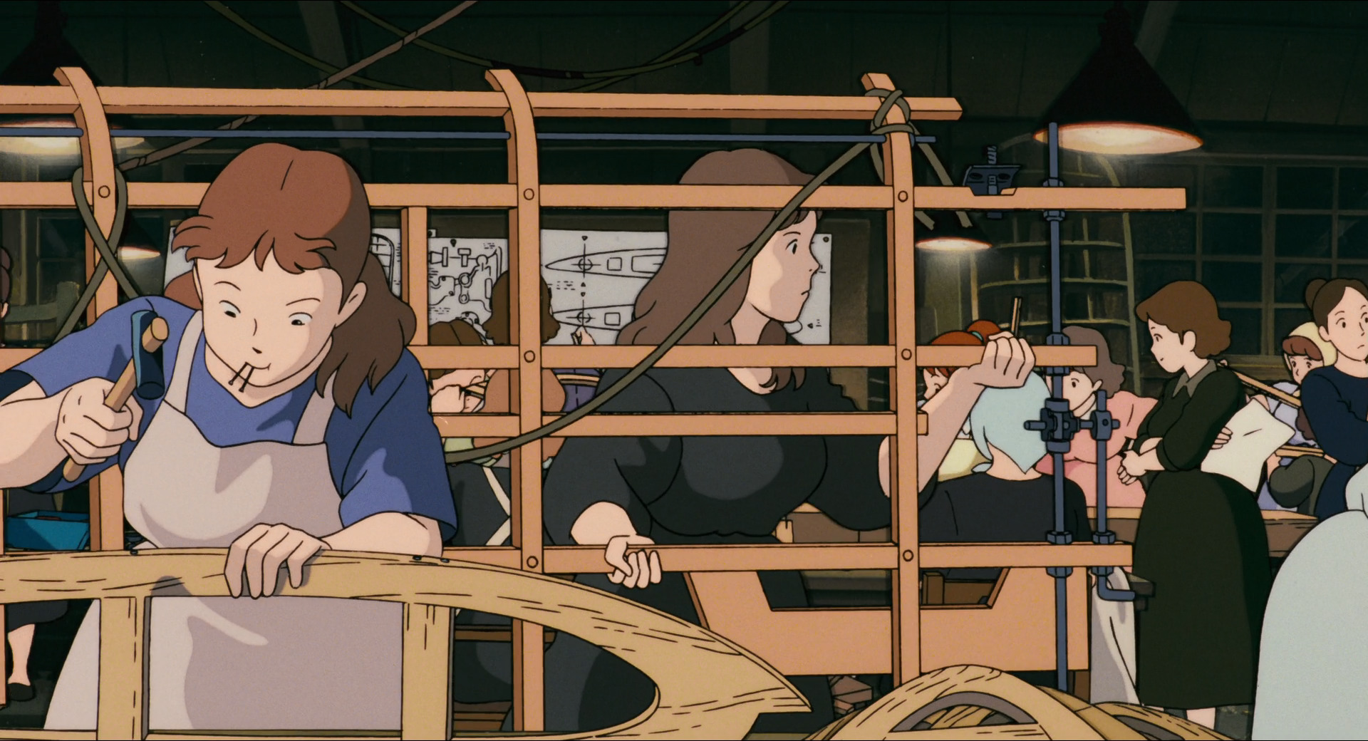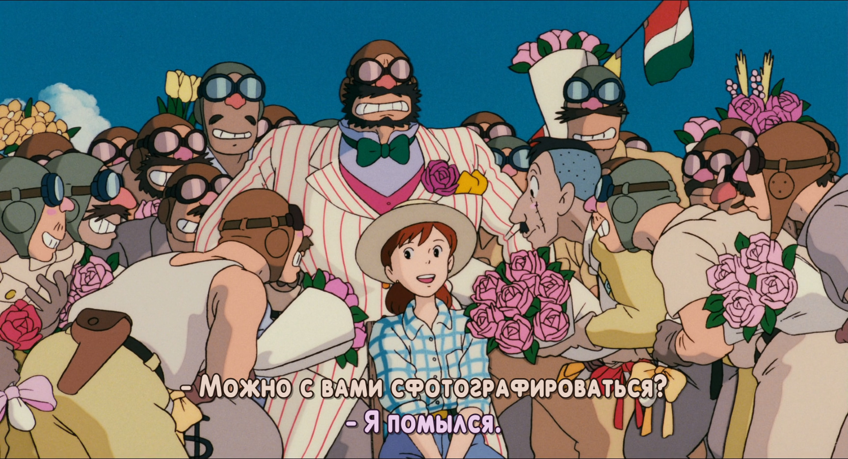 Работающая над самолетом огромная семья механика, где каждая женщина вынуждена подрабатывать из-за ушедших на заработки мужчин. И инженер 17-ти летняя красавица-внучка. У Порко там инфаркт был 100% в какой-то момент. Весь аппарат перекроили женские руки, потом еще и летали на нем же