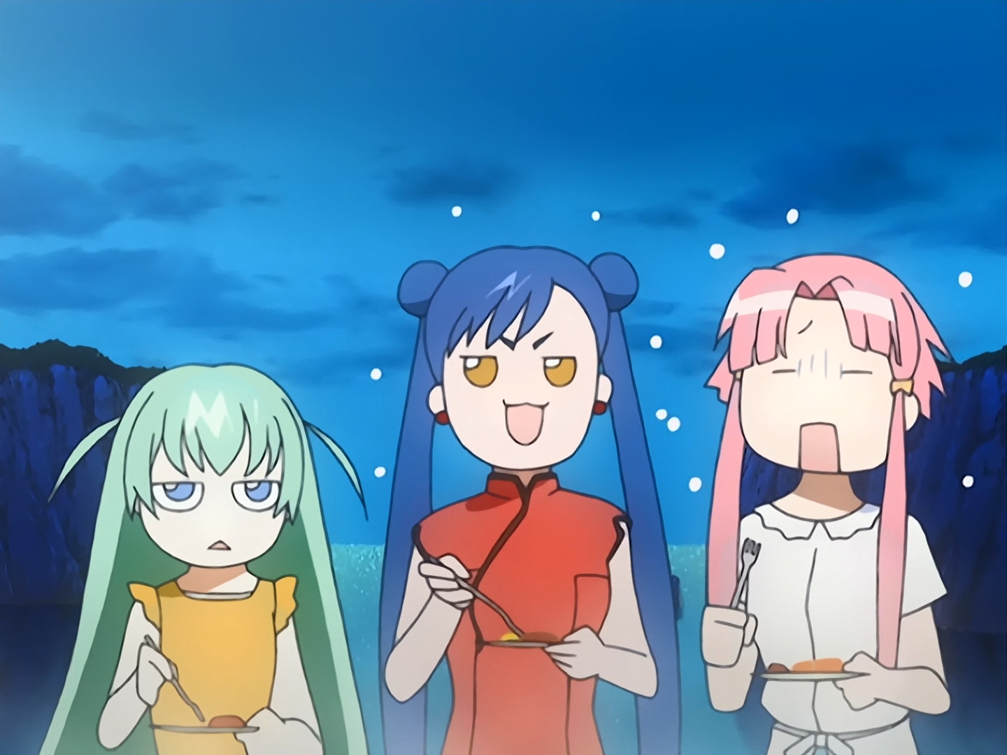 Каждая серия хоть и является отдельным сюжетом, развитие его довольно постепенно вводит новых и запоминающихся что внешне, что по характеру персонажей. Особенно эти чиби-моськи, по которым отдельно можно отличать всех девушек.