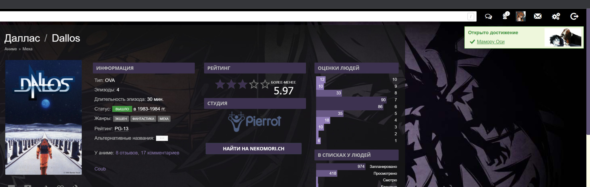 Посмотрите аниме, которое другой участник оценил на 8 и выше