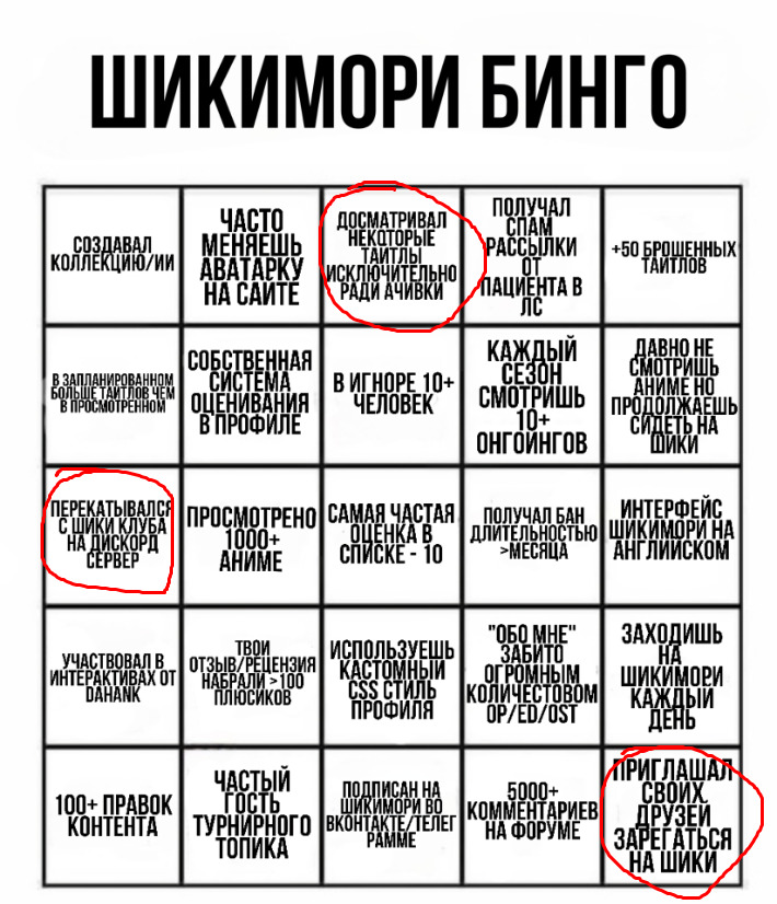 Shikimori Бинго
