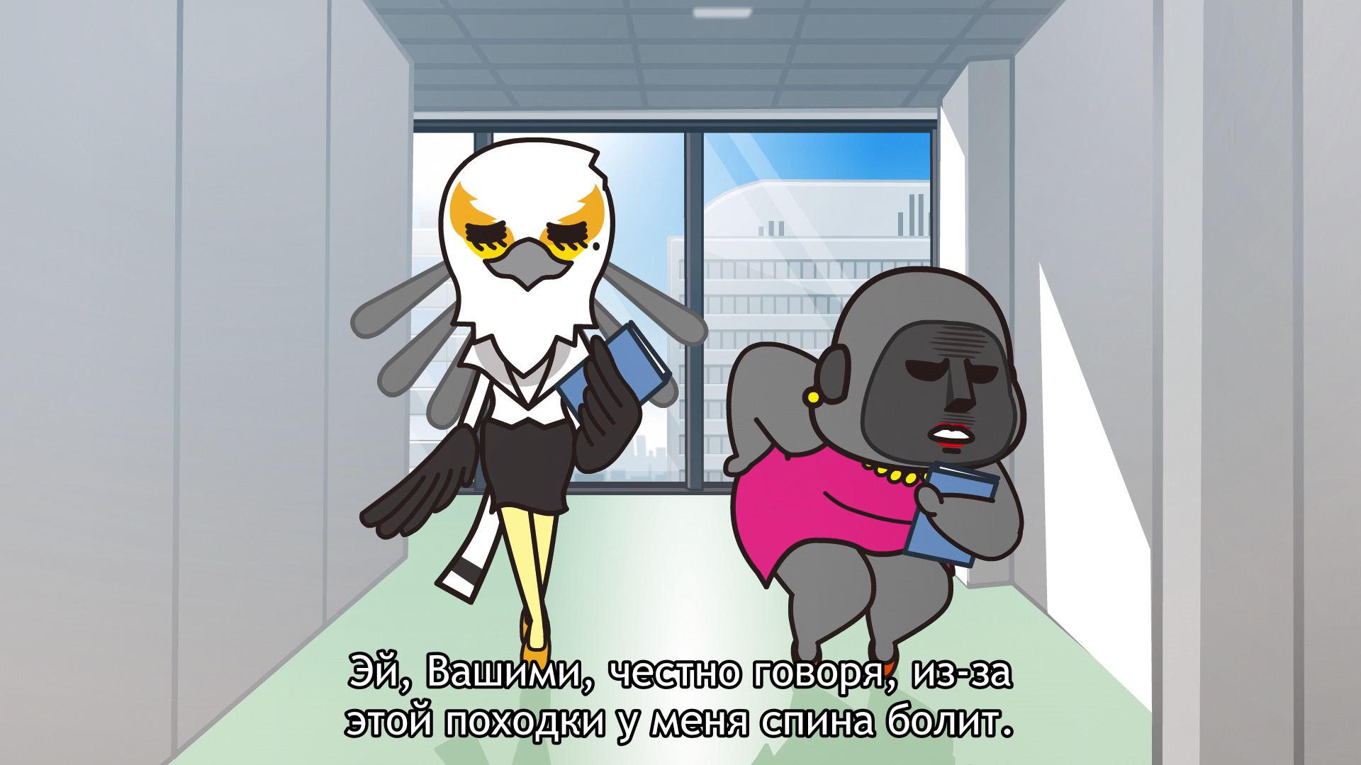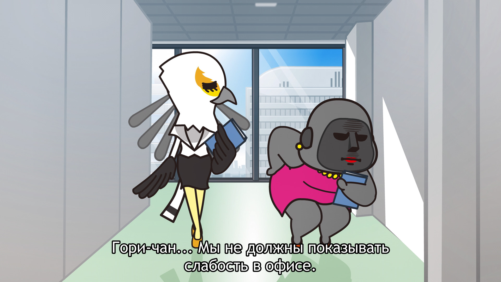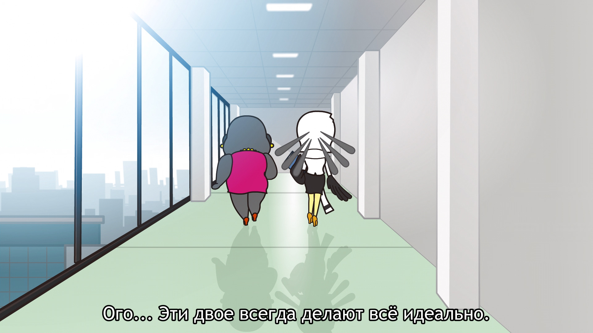 Забавный сериал на полтора часа жизни. Отзыв я пишу уже после первого она сезона, так что некоторые характеры в моей голове переплетены. Но об этом позже. В офисе я не работал, но половина шуток и сюжетных моментов мне были довольно близки: борьба с гипер-холодным кондиционером летом (кто вообще зимой его включает?), с самим собой ранним утром, когда не хочется вставать. Очень много ситуаций, все рассматривать смысла нет, но во истину хотя бы в одной найдете себя. Рисовка довольно простая, но забавная, герои интересны в своих характерах. Конечно, неудобно переключать каждую минуту новую серию и устанавливать нужные сабы, но, благо, настроила проигрыватель и наслаждалась. Сложно говорить про сюжет, всё же тут просто рассматриваются забавные офисные и более личные ситуации без глубоко копания и смысловой нагрузки. Расслабиться самое то.