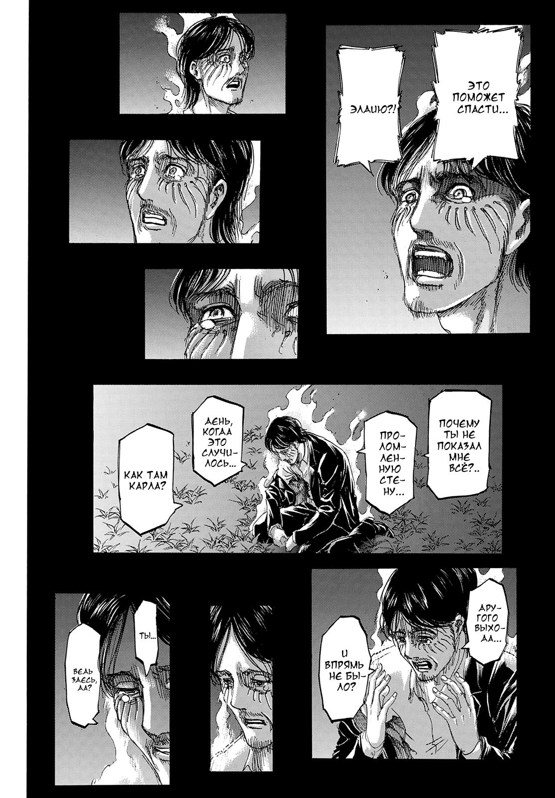 Автор обосрал все свое произведение одним финальным актом. Доказывает это убогий фрейм с Эреном лежащим, плачущем в луже мочи и кринжа, истеричащим о том, как Любит Микасочку... Тут, вы хоть в чем-то правы
